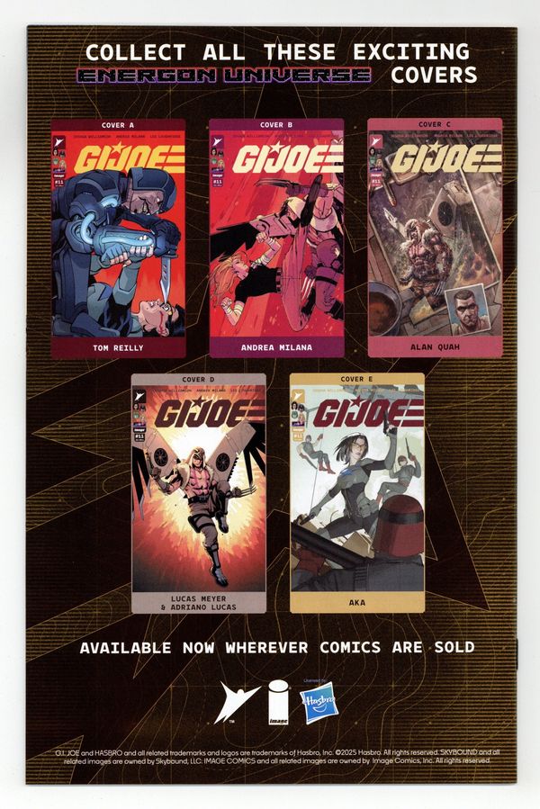 Tags: G.I. Joe$32.00Limited 1 for 50 Retailer Incentive Variant Cover. Written by Joshua Williamson. Art by Andrea Milana, Lee Loughridge. Cover by AKA. The final showdown with Major Bludd. Itll be an eye for an eye... 28pgs., FC, T Cover price $3.99.