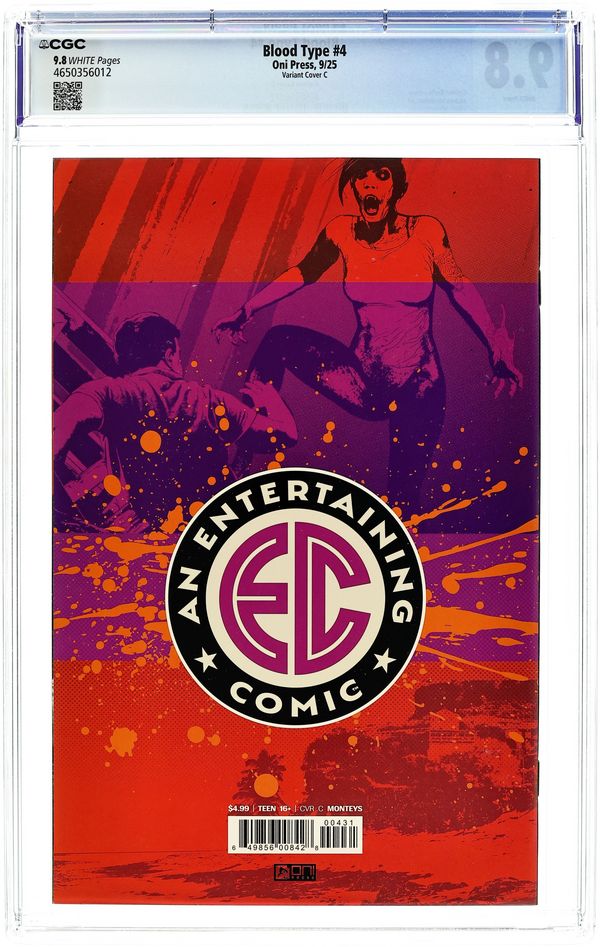 Limited 1 for 10 Retailer Incentive Variant Cover. Written by Corinna Bechko. Art by Andrea Sorrentino. Cover by Albert Monteys. Sooner or later, the past always comes back to BITE YOU! What started as a seemingly random escape to an island paradise has proven to be anything but a vacation as the sun slowly sets (or rises, rather) possibly for good on vampire Adas island adventure. Thinking she was at the top of the local food chain, she suddenly finds herself in captivity, held by a mysterious cabal with an unholy agenda! But you know what they say about cornering a dangerous animal . . . What fun weve had! Here it comes—the shocking final chapter of of EC Comics first-ever standalone horror splatter-thon . . . from the die-namic team of Hugo Award–nominated author Corinna Bechko (Green Lantern: Earth One) and Eisner Award–winning artist Andrea Sorrentino (Gideon Falls)! 32 pages, full color. Rated T+ Cover price $4.99.