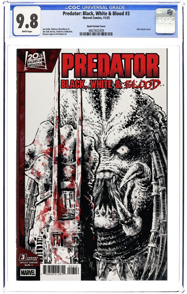 Tags: PredatorPredator Black White and Blood (2025 Marvel) 3C CGC 9.8