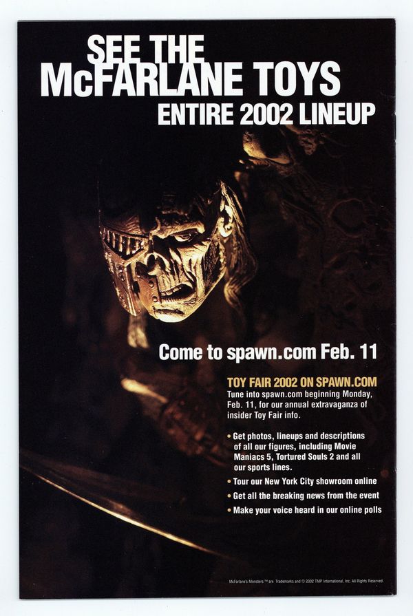 (W) Todd McFarlane & Brian Holguin (P) Angel Medina (I) Danny Miki (C) Brian Haberlin Cover By Greg Capullo. The Bridge, Part l?Working on a restoration project in a remote part of Japan, an architect dreams of doomed ancestors, vengeful gods and hungry demons ? and of a mysterious bridge that leads to the gateway to Hell. A strange discovery at the excavation site soon leads him to believe that his dreams are more than they seem ... and to a terrifying encounter with the Hellspawn. Part one of a new two-part story arc. Cover price $2.50.