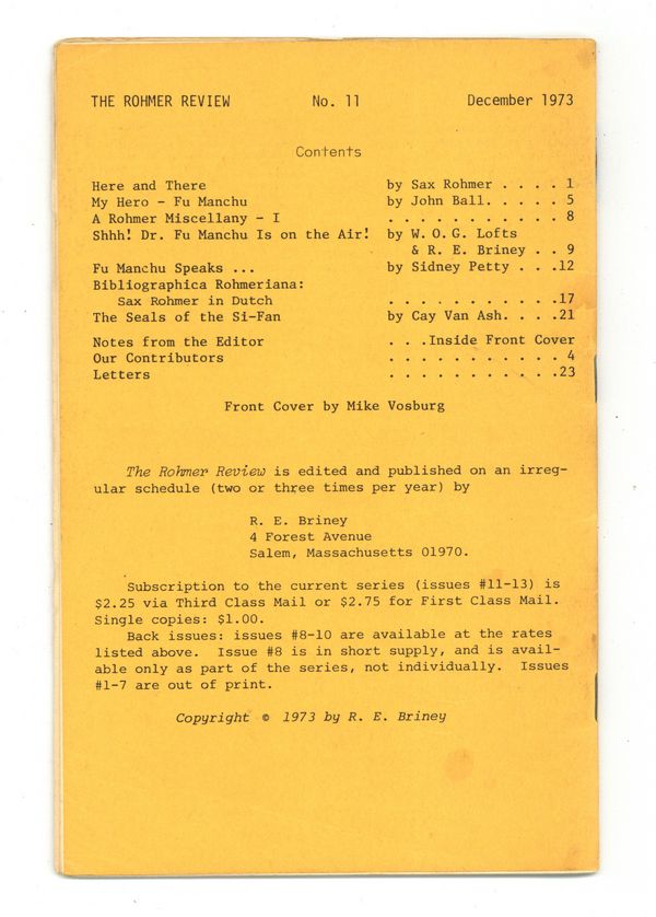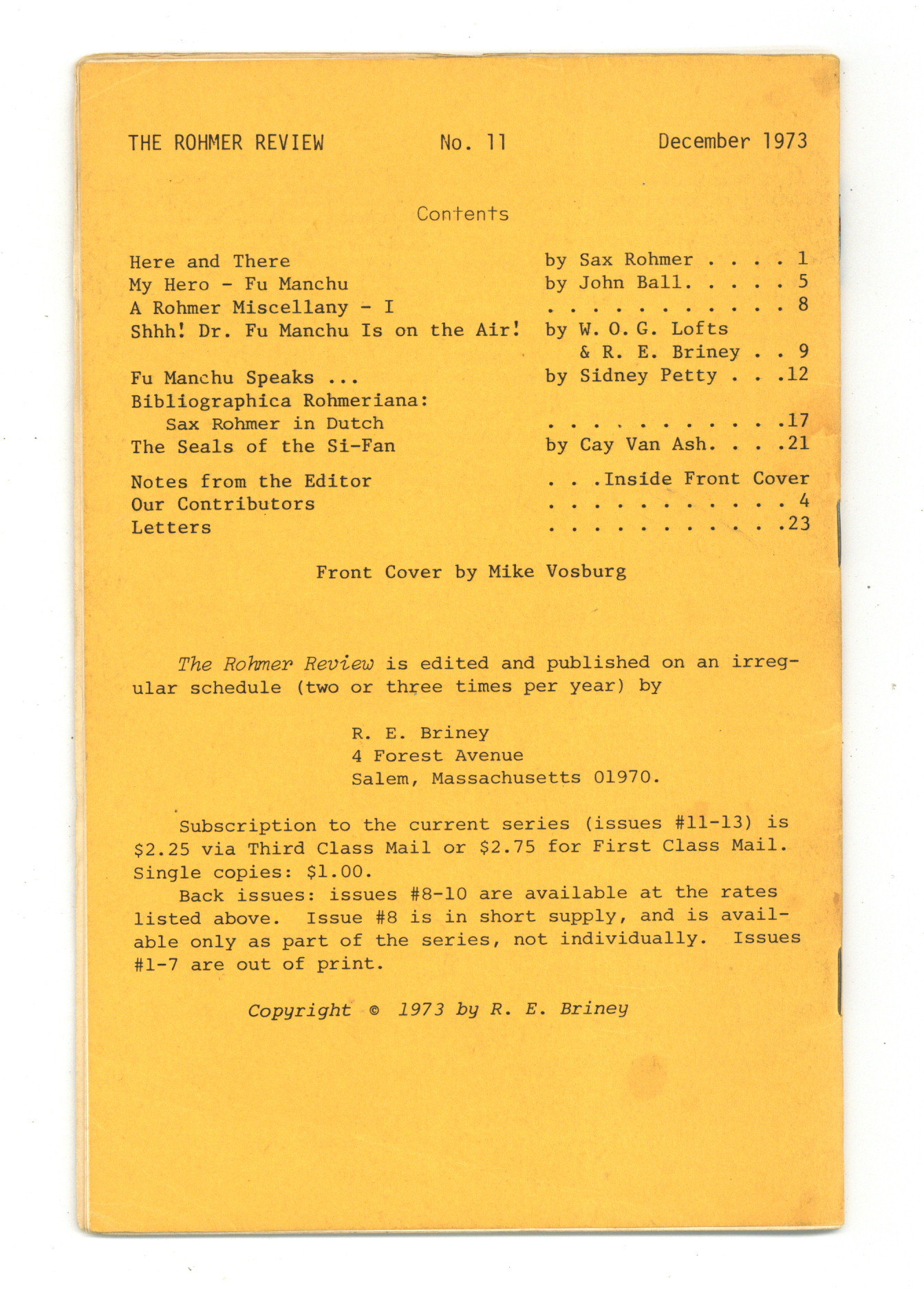 Published Dec 1973 by Robert E. Briney.$18.00No. 11 - December 1973. 5.5" x 8.5", 28 pages, B&W.