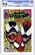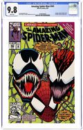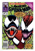 Direct Edition. "Savage Grace!" Part 3 of 3. Script by David Michelinie. Pencils by Mark Bagley. Inks by Randy Emberlin. Cover by Mark Bagley and Randy Emberlin. Carnage takes J. Jonah Jameson hostage and drags him to a heavy metal concert at Madison Square Garden! The psychotic killer plans to execute JJJ in front of thousands of headbangers! But before Carnage can deliver the deathblow, Spider-Man and Venom strike! The ferocious fight leads into the subway tunnels and then back onto the concert stage! Where thanks to MSG's awesome sound system, the web-slinger tries to knock out both Carnage and Venom! The wall-crawler's ploy better work, because double-crossing Venom could have lethal consequences! A fantastic finish! First appearances of the Richard Parker and Mary Parker life model decoys (LMD's). Cameo appearances by Joe Robertson, Mr. Fantastic, and the Human Torch. (Notes: Venom appears next in the one-shot: Spider-Man Special Edition -- The Trial of Venom (1992). Carnage returns in the first issue of Spider-Man Unlimited (1993 1st series) to kick off the Maximum Carnage saga.) 36 pages. $1.25 cover price. Cover price $1.25.