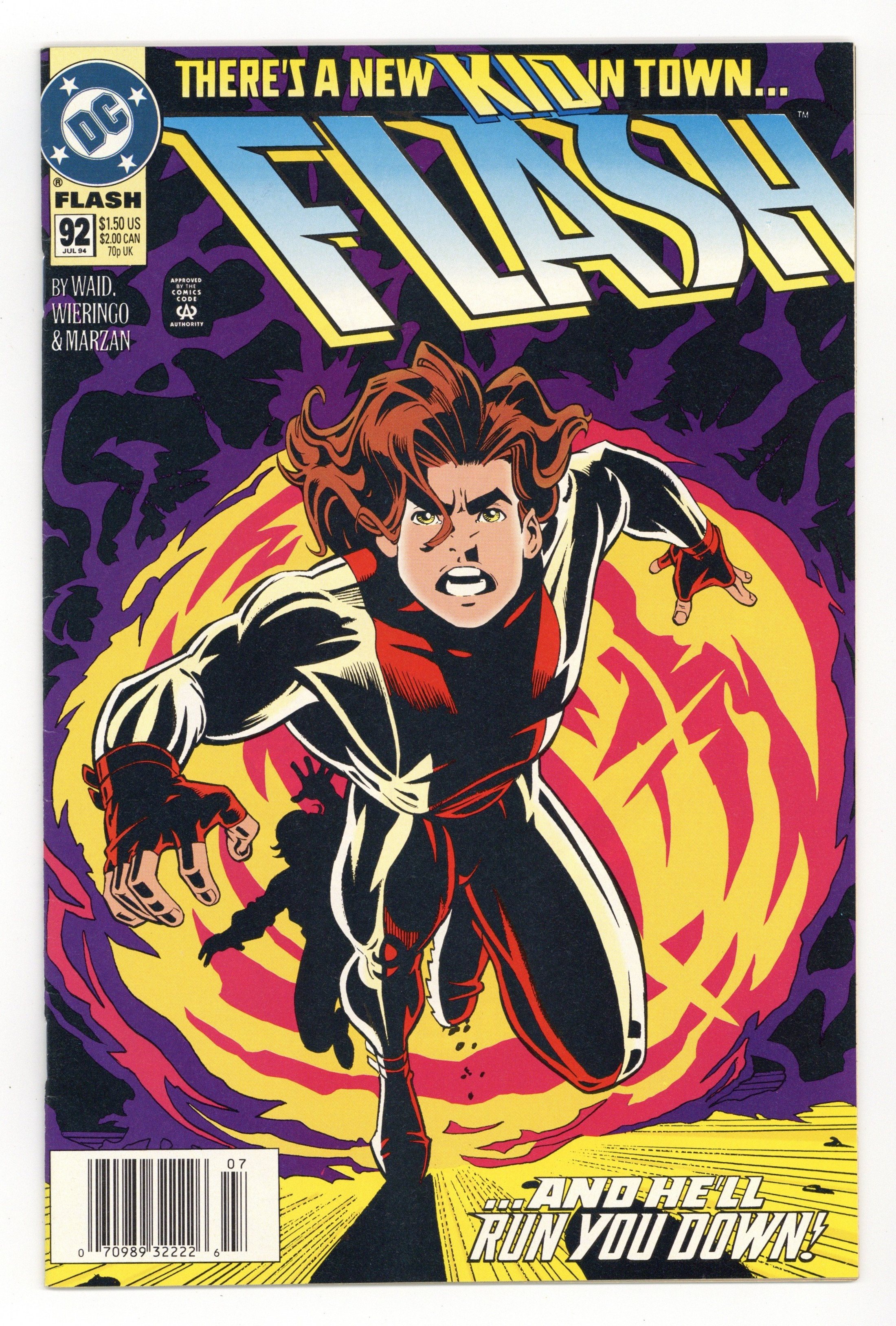 In "Reckless Youth, Chapter One: Speed Kills", Iris Allen arrives from the future, bringing with her a special someone. Featuring the first appearance of Impulse. Part 1 of 3, continued next issue. Script by Mark Waid, pencils by Mike Wieringo, inks by Jose Marzan, Jr. Wieringo/Marzan, Jr. cover. Cover price $1.50.