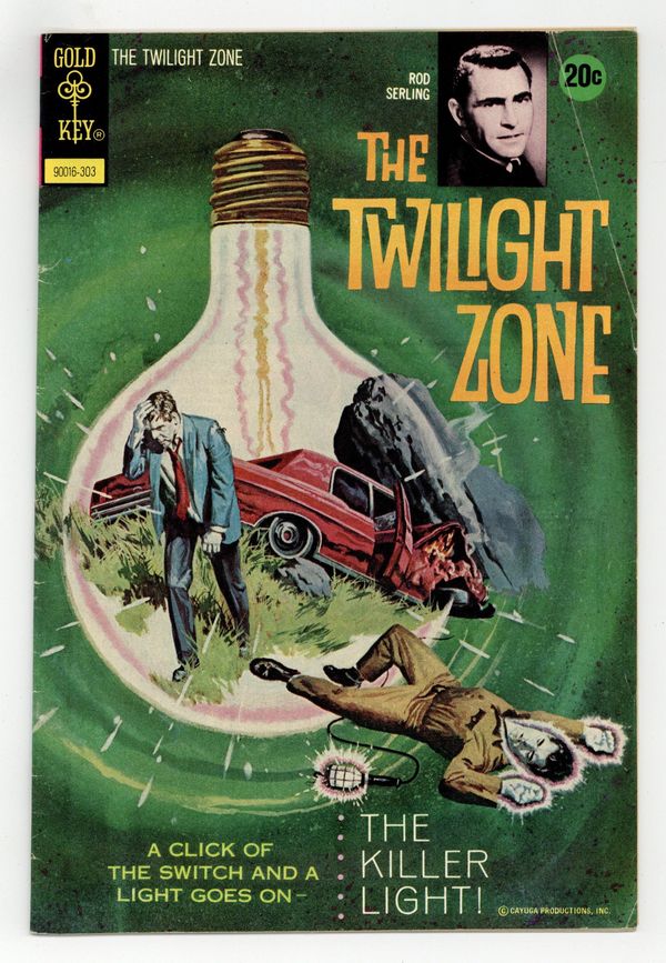 20 cent cover price variant. Number on Cover: 90016-303. Anthology type comic with suspenseful, mystery, and spooky stories done in the style of the classic TV series "The Twilight Zone" which starred Rod Serling as your host. Painted cover art. Nightmare In Miniature, art by Luis Dominguez. Fiery Death text story, art by Joe Certa. The Numbers Game, art by Luis Dominguez. The Killer Light, art by Joe Certa. Perfect Partners, pencils by Stanley Pitt, inks by Reginald Pitt. 36 pgs. $0.15. Cover price $0.15.