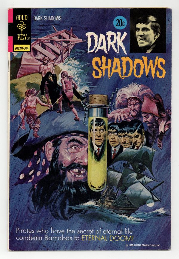 20 cent cover price variant. # on cover: 90240-304. Pirates who have the secret of eternal life condemn Barnabas to eternal doom! "Island of Eternal Life Pt. 1: The Phantom Galleon" and "Pt. 2: The Fountain of Youth" are illustrated by Joe Certa. Cover painting by George Wilson. Cover price $0.15.