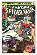 Tags: Marvel Legacy Numbering: Amazing Spider-Man (part 163), Spider-Man$23.50"All the Kingpin's Men!" Part 1 of 2. Script by Len Wein. Art by Ross Andru (breakdowns), Mike Esposito (finishes), and Dave Hunt (backgrounds). Cover by Dave Cockrum and John Romita. At long last the Kingpin is back! And the fat crime boss needs a life! Actually a life force...to revive his comatose son Richard! To that end the Kingpin lures the web-slinger to a West Side warehouse for a one-on-one showdown! Is the wall-crawler ready to fight for his life (force)? Also in this issue, Peter's friends throw a surprise party for him to help furnish and decorate his Chelsea apartment. Cameo appearances by Richard Fisk, Harry Osborn, Flash Thompson, Mary Jane Watson, Liz Allan, Joe Robertson, and Glory Grant. (Notes: The Kingpin and the wall-crawler previously clashed in Amazing Spider-Man 85. The Kingpin formerly appeared in Captain America 146-148. The first issue of Peter Parker, the Spectacular Spider-Man was also published this month. The letters page includes a letter from Fantagraphics publisher Kim Thompson.) 36 pages. Cover price $0.30.