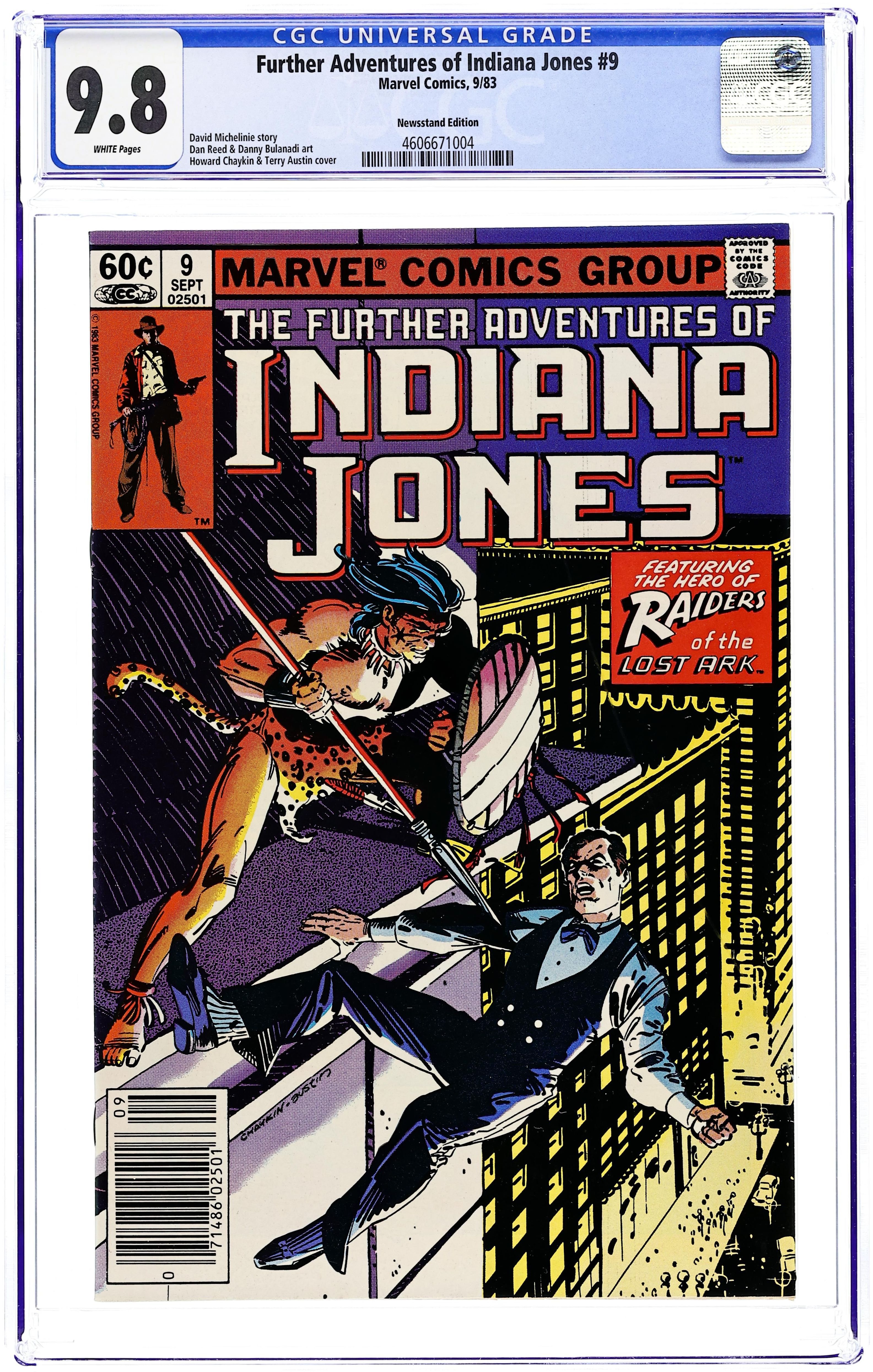 Newsstand Edition. Written by Archie Goodwin and David Michelinie. Art by Dan Reed and Danny Bulanadi. Cover by Howard Chaykin and Terry Austin. Tired of lost cities, Indy and Marion decide to get away from it all into some exotic locale--a locale which abruptly becomes less exotic and very deadly. "The Gold Goddess". Cover price $0.60.