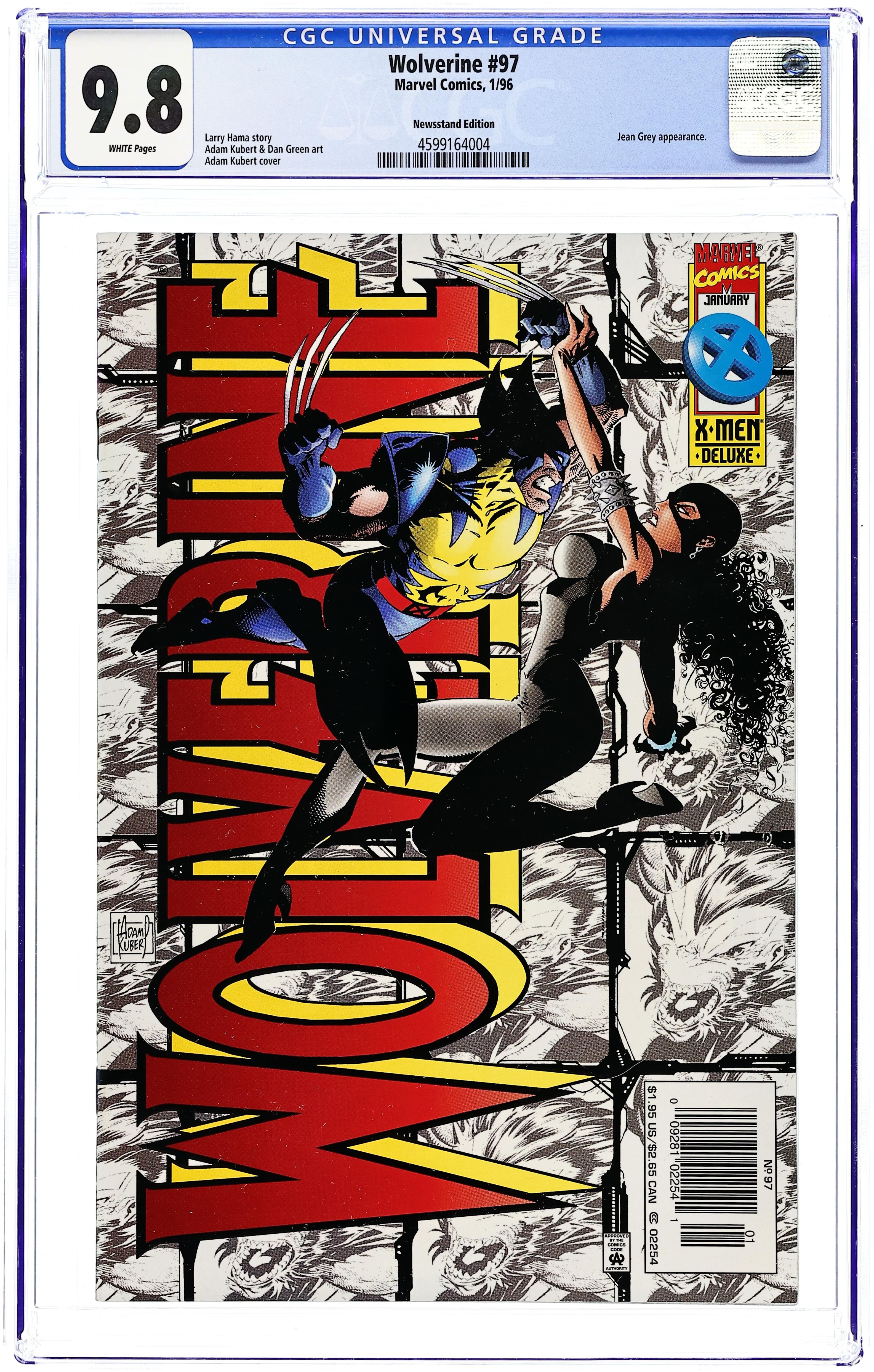 Newsstand Edition. Cover art by Adam Kubert. Bump in the Night, script by Larry Hama, pencils by Adam Kubert, inks by Dan Green; Wolvie and Jean Grey are trying to track down Cyber but find the deadly Chimera instead. 36 pgs. $1.95. Cover price $1.95.