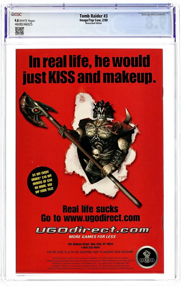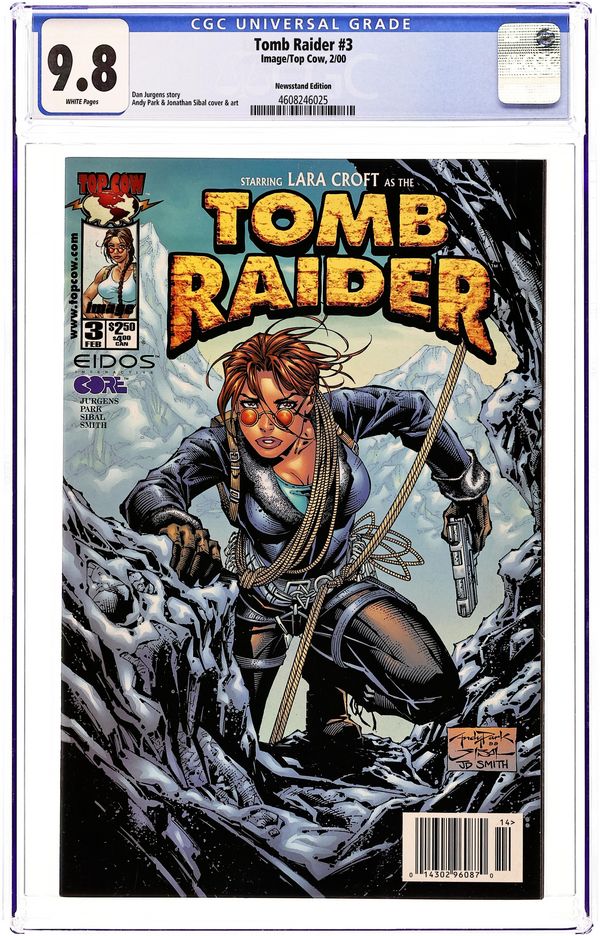 Newsstand Edition. Standard cover by Andy Park and Jonathan Sibal. Top Cow Comics (W) Dan Jurgens (P) Andy Park (I) Jon Sibal Amid death, turmoil, and treachery, the odds are long as Lara Croft races against incredible odds to find the coveted Medusa Mask! Few know of its existence, but those who do will pay any price and commit any crime to make sure it's theirs! FC, 32pg" Cover price $2.50.