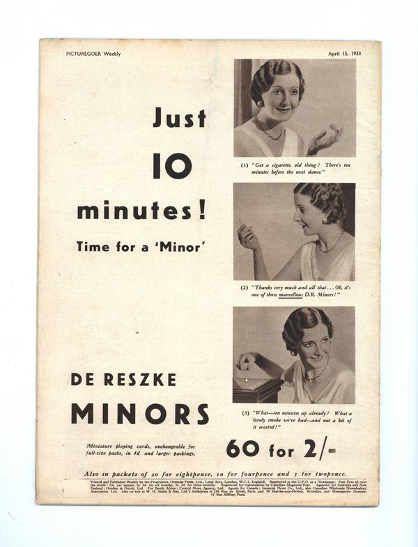April 15, 1933. UK weekly film magazine. Heather Angel cover and article. Includes celebrity features, reviews and gossip column. 9-in. x 12-in., 34 pages, B&W with spot color.