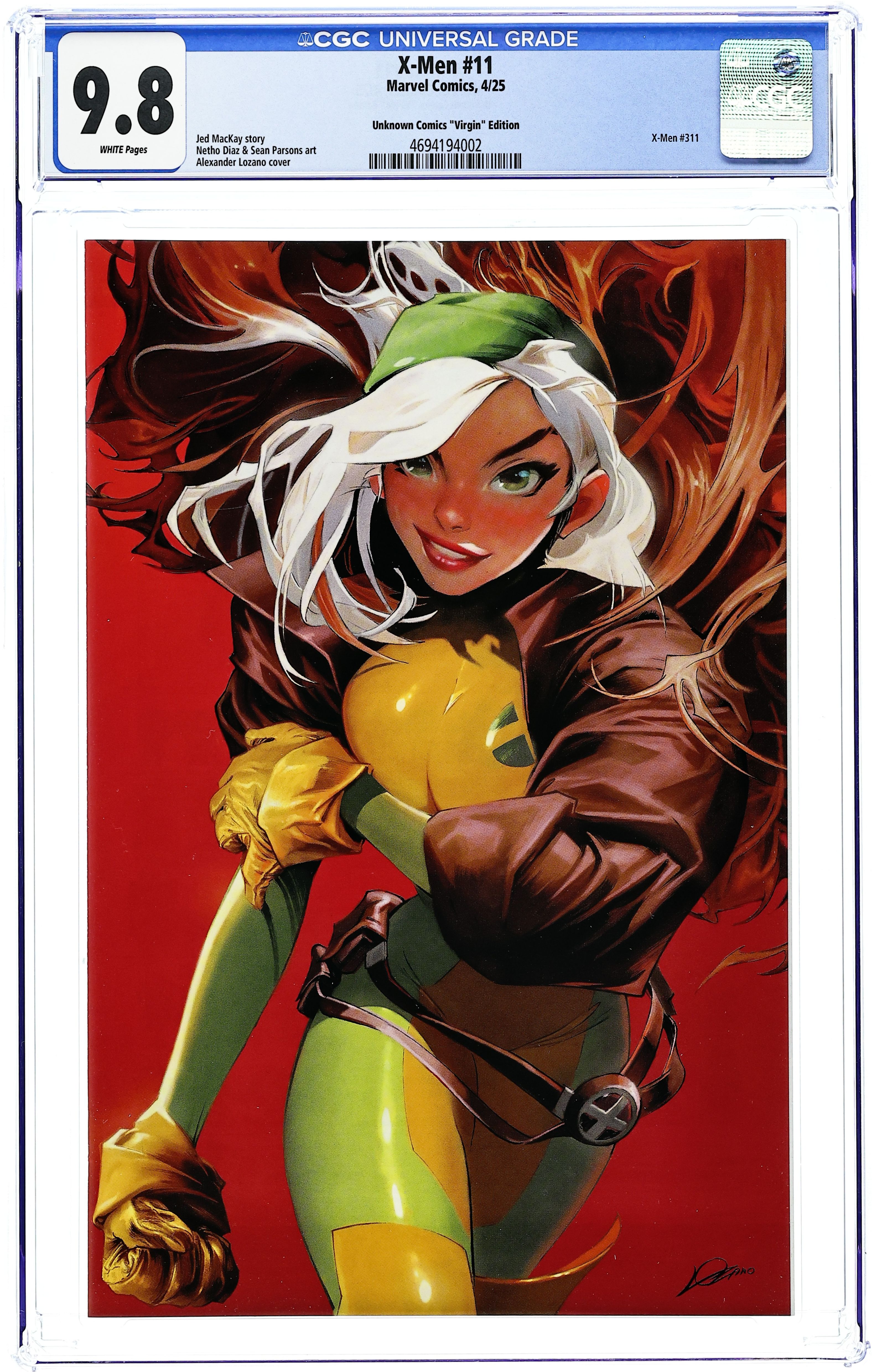 Unknown Comics Exclusive Virgin Cover by Alexander Lozano. Written by Jed MacKay. Art by Netho Diaz. PLANETFALL! A deadly cadre of warriors pursue their target to Earth, a target making a beeline to the X-Men's home territory of Alaska! But who is this fugitive, and what grim portents do they carry for the X-Men? 32 pages, full color. Rated T+