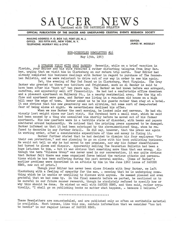Published May 1963 by James W. Moseley.$910.00No. 16 - May 15, 1963. 8.5" x 11", 1 pages, B&W.