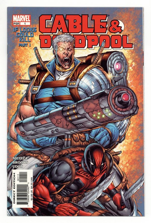 $21.00Written by FABIAN NICIEZA Pencils by MARK BROOKS (UDON) Cover by ROB LIEFELD Wade Wilson and Nathan Summers are back ? and this time, they're stuck with each other! Can two grown men with deadly genetic weaponry work together without driving each other crazy?! Action, adventure, black-ops, black humor and lots and lots of gunfire mark the return of your two favorite mutant anti-heroes to their own ongoing series! COVERS BY DEADPOOL & CABLE CREATOR ROB LIEFELD! Cover price $2.99.