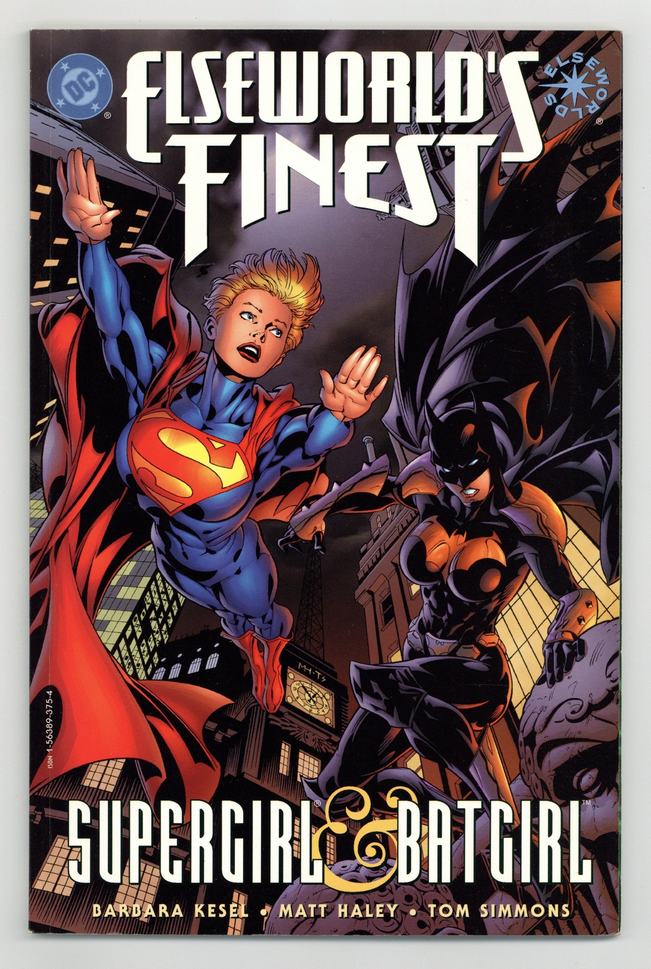 Elseworlds. A beautiful Prestige one-shot introduces the finest team of a world you never imagined! In an Elseworld where Supergirl was raised by Wonder Woman and the Justice Society, and Batgirl is a vigilante who keeps Gotham City safe from villainy and super-beings, there could never be two more different super-heroines. But when the love of Supergirl's life--her benefactor, Lex Luthor--is kidnapped by the Joker--a bulked-up loser obsessed with Batgirl--the champions of Gotham and Metropolis form a reluctant partnership...and discover the horrifying secret of the Girl of Steel's origin. Written by Barbara Kesel and Tom Simmons. Art and cover by Matt Haley and Tom Simmons. FC, 64 pg. Prestige Format. Cover price $5.95.