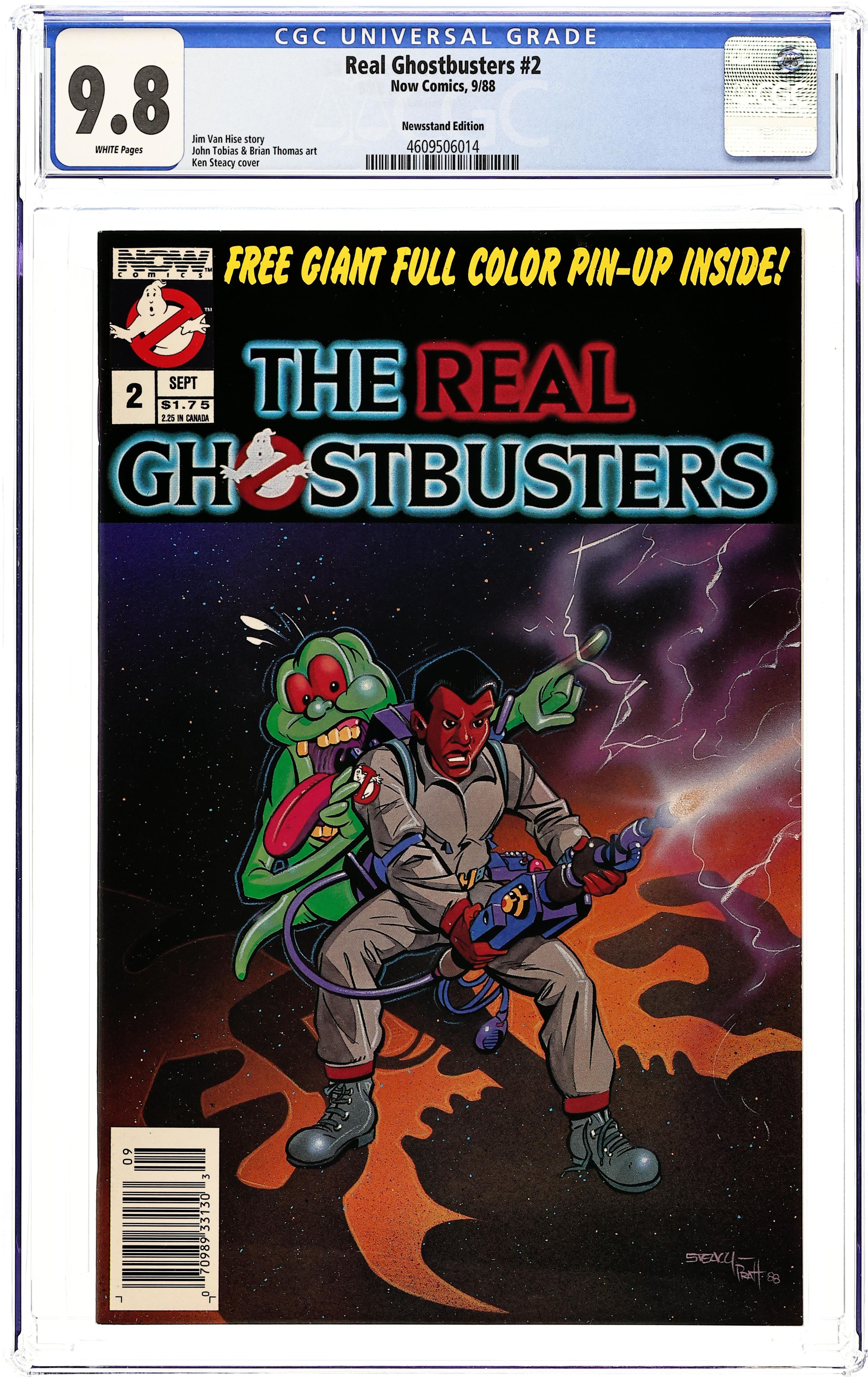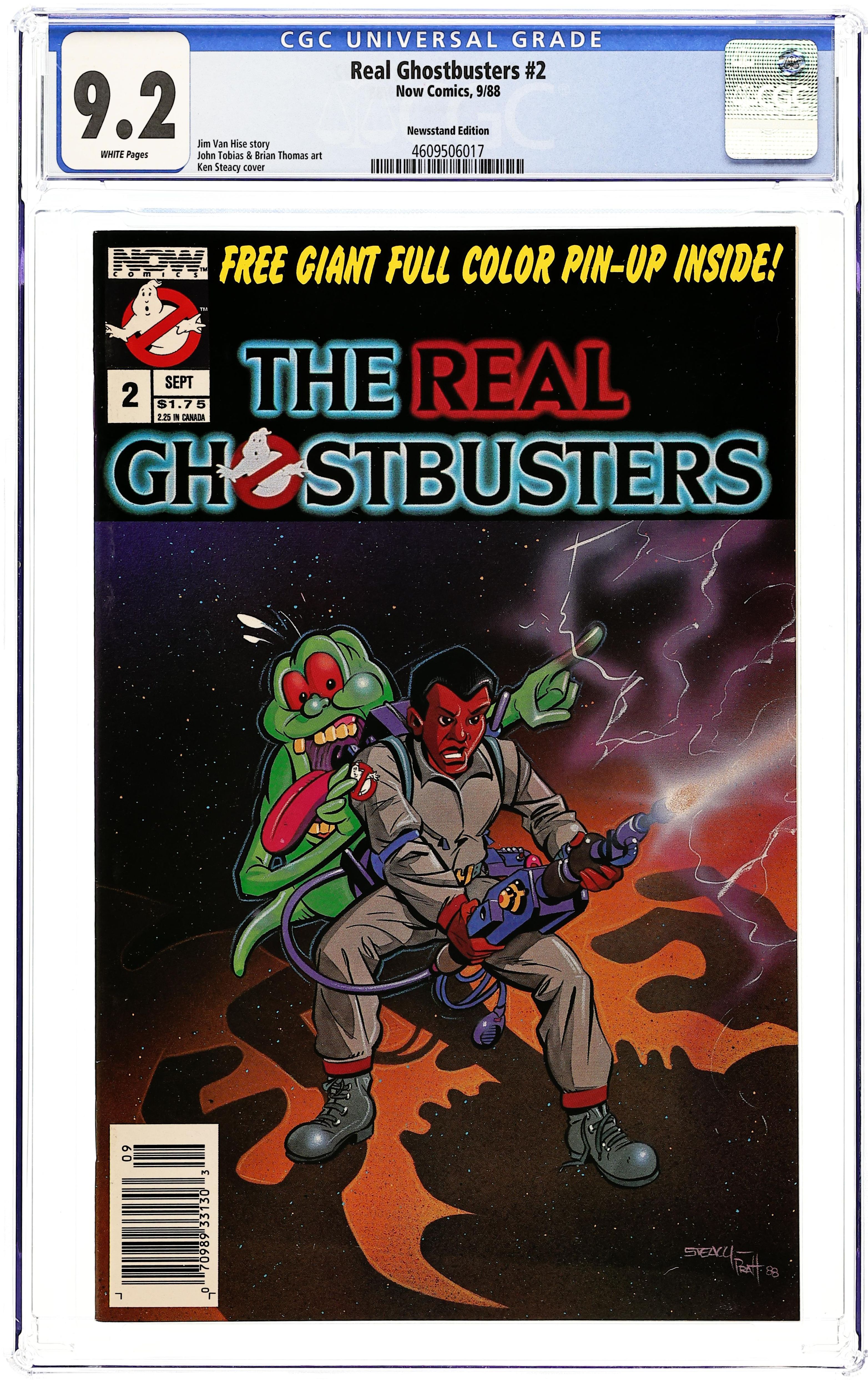 Newsstand Edition. Story by James Van Hise. Art by John Tobias. Cover by Andrew Pratt and Ken Steacy. The official comic adaptation of the popular 1980s cartoon series, inspired in turn by the hit movies. Time travelers release Captain Nemo in exchange for the power source of his ship, the Nautilus; meanwhile, the alien called Slg enlists the Ghostbusters to stop the time travelers from destroying the Earth. 32 pages, Full Color. Cover price $1.75.