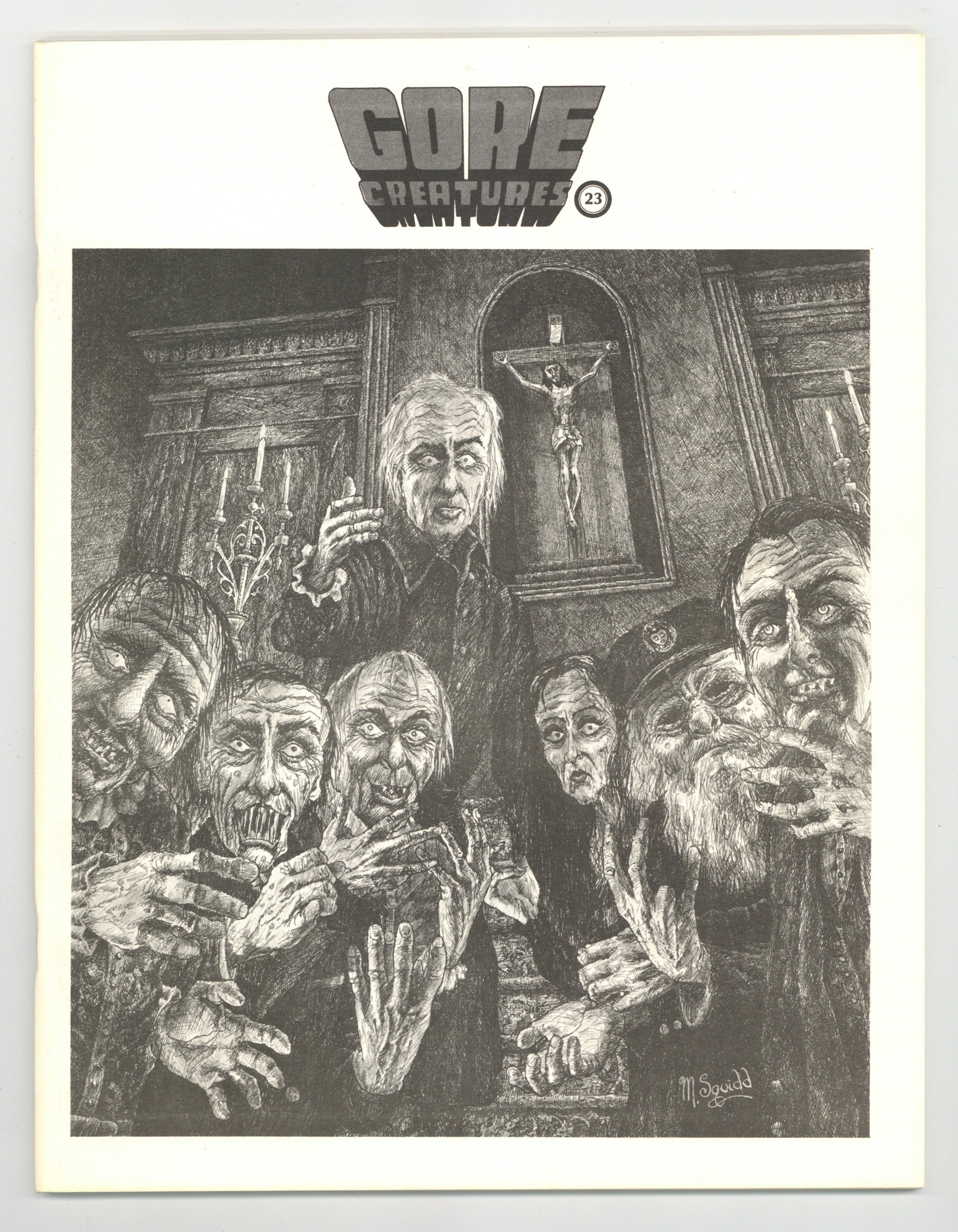 Horror fanzine created by Gary J. Svehla. Writers include Ron Borst, John Antosiewicz, Bill Littman, Don Leifert, and Don G. Smith. Artists include M. Squidd, Marc Isaacs, Jim Garrison, Allen Koszowski, Dave Ludwig, Christ Farrill, Steve Karchin, and Tim Hammell.8-3/8" x 10-7/8", 52 pages, B&W. Cover price $0.50.