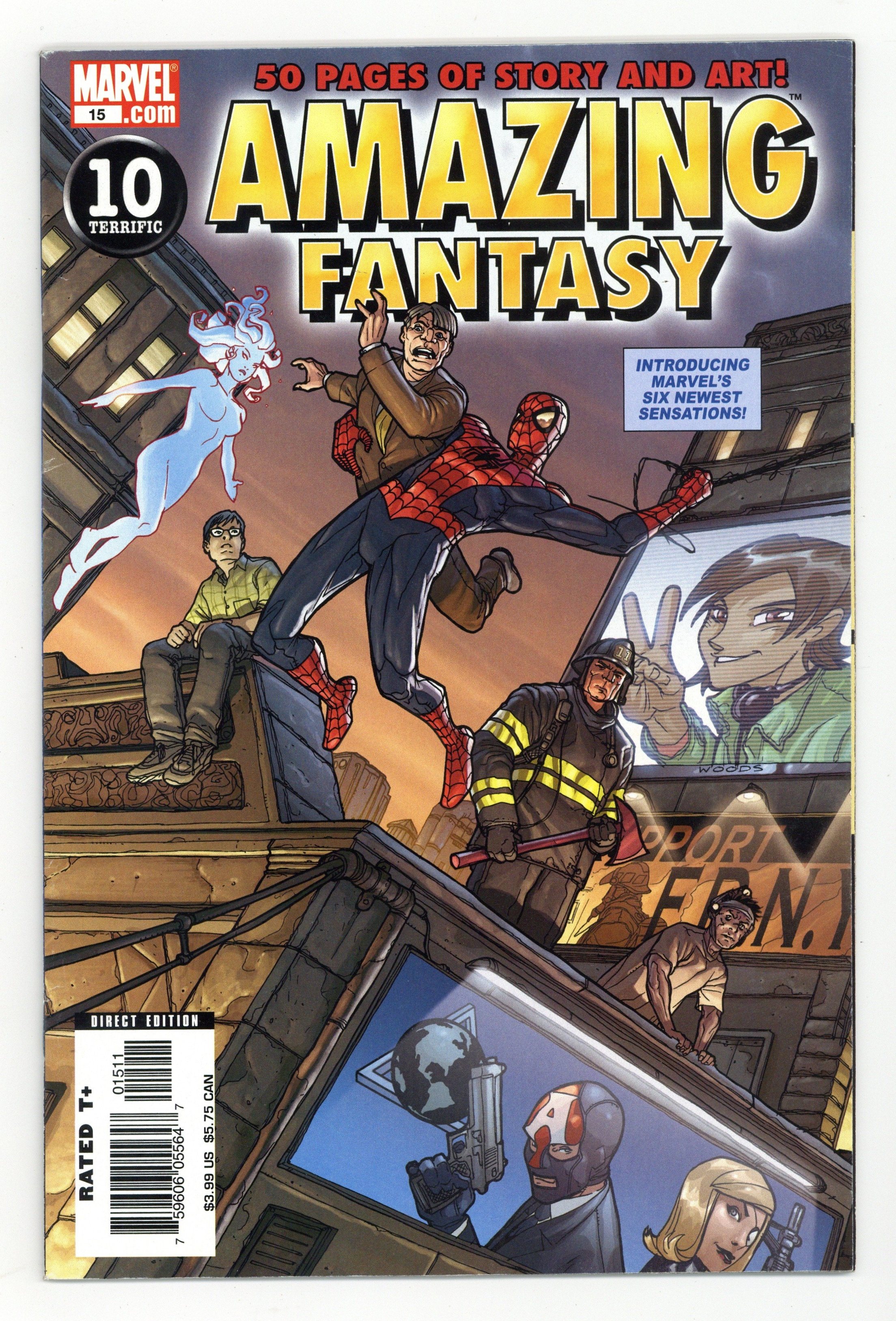 Starts Apr 27 Direct Edition. Planet Hulk/World War Hulk tie-in (1st appearance of Amadeus Cho) - Written by DANIEL WAY, DAN SLOTT, GREG PAK, ROBERT KIRKMAN, & ROBERTO AGUIRRE-SACASA Penciled by PETE WOODS, NICK DRAGOTTA, JEFF PARKER, SAL BUSCEMA, KHARI RANDOLPH & TAKESHI MIYAZAWA Cover by PETE WOODS MILESTONE ISSUE: In the tradition of the original Marvel classic that debuted everyone's favorite wall crawler, we introduce a new generation of heroes in this 48-page special featuring five new stories by our hottest new writers. Will lightning strike twice? Is Marvel's next superstar in these very pages? A guaranteed blast of comic book fun! Cover price $3.99.