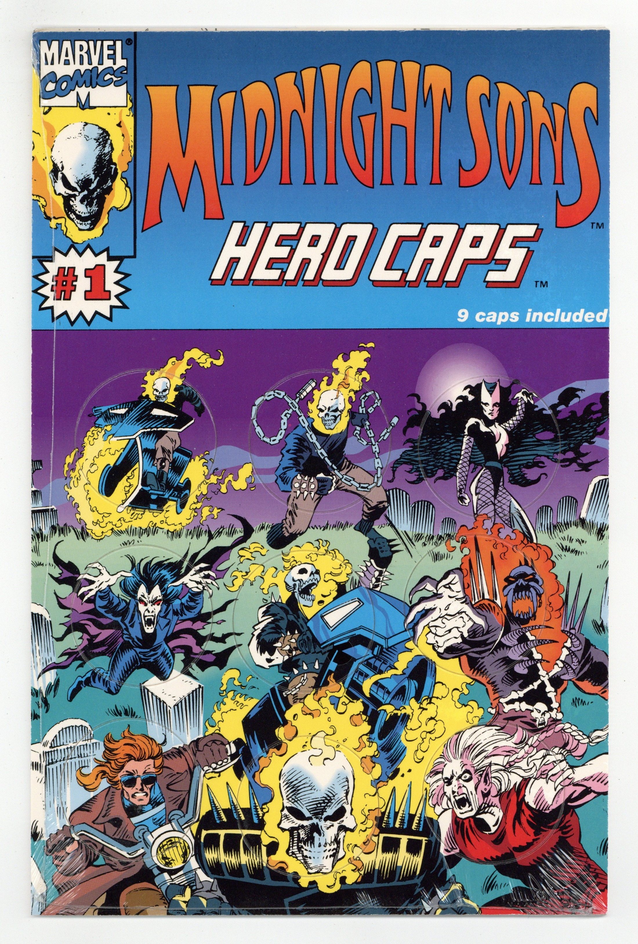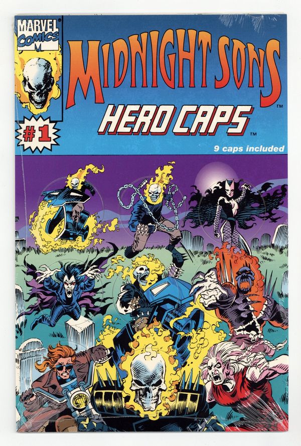 $20.00#1 - includes 9 collectable caps featuring the Midnight Sons, multiple Ghost Rider, Morbius and more. Each Cap is 2-in. in diameter. Full Color. Cover price $3.95.