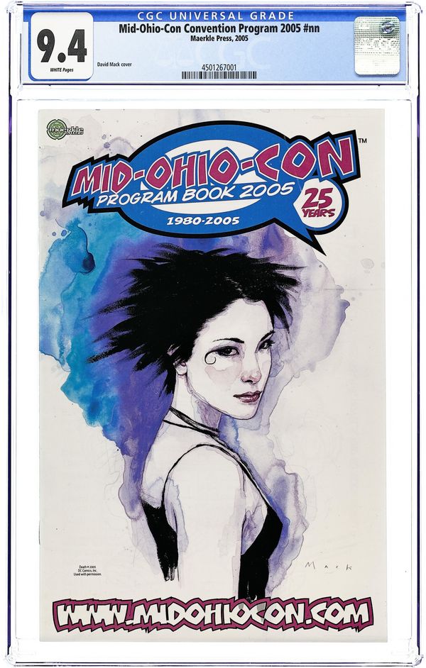 Flip Cover by David Mack and Adam Hughes. The Program Book for Mid-Ohio-Con 2005, celebrating the convention's 25th anniversary.
