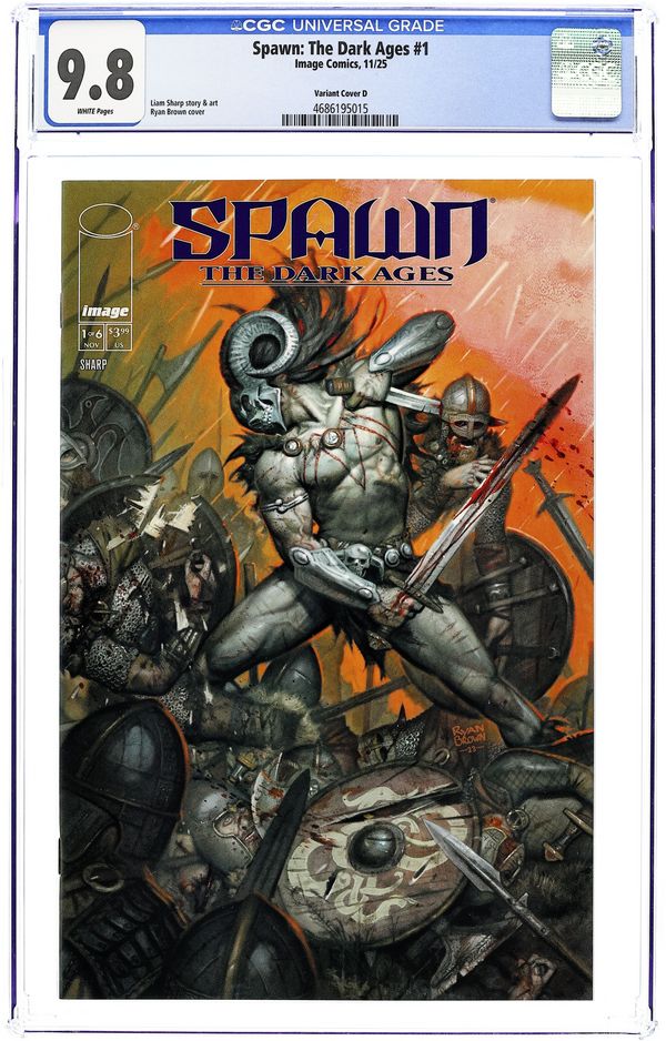 Limited 1 for 50 Retailer Incentive Variant Cover. (W) Liam McCormack-Sharp (A) Liam McCormack-Sharp (CA) Ryan Brown 'Saxon barbarians harry Britain from the east. In the North, the Pictish threat looms. From the West, Hibernians send raiders from the land that shall one day be called Ireland. Aurelianus, newly anointed king, must defend Britain against all of these threats, whilst also dealing with the growing rebellion amongst his own people. For there are stories of another, more worthy king. One anointed by the old Celtic gods – whom the Christians refer to as the Devil Spawn...' An exciting new miniseries from acclaimed Artist and Writer, Liam Sharp. Epic brutality comes to the Spawn Universe. Cover price $3.99.