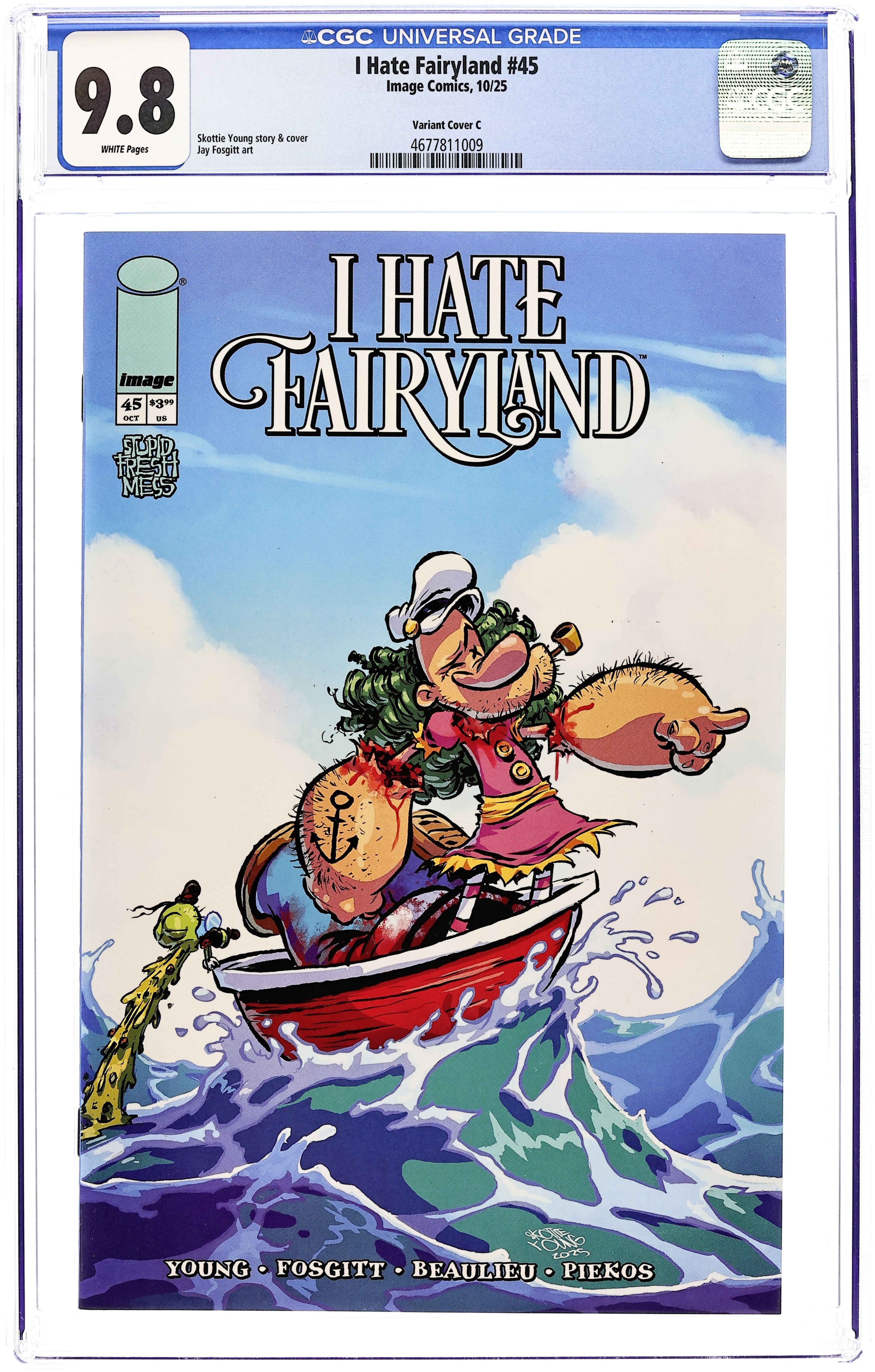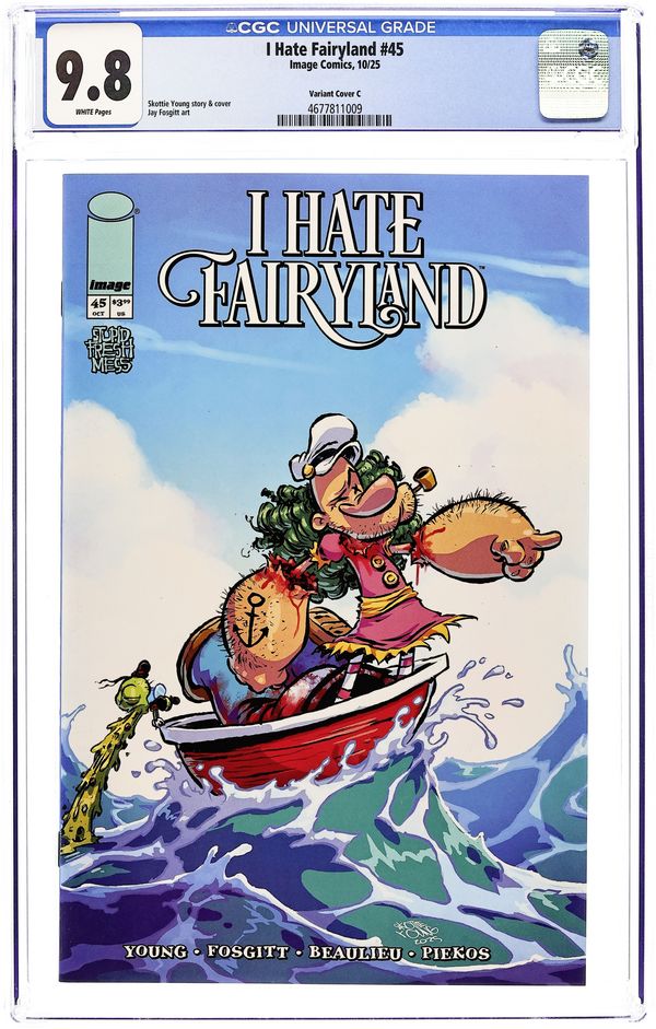 Limited 1 for 10 Retailer Incentive Variant Cover. (W) Skottie Young (A) Jay Fosgitt (CA) Skottie Young POPEYE SAILS INTO FAIRYLAND! As Gert and Larry sail the oceans blue in search of a dastardly sea beast that may hold the key to Gert returning home, they find themselves outmatched and in need of help... from none other than Popeye the Sailor Man! This very special issue not only features a guest star, but a guest artist as well, as cartoonist supreme Jay Fosgitt (Marvel Fairy Tales, Bodie Troll) joins Skottie and crew on the poop deck of the good ship IHF! Cover price $3.99.