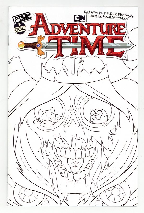 Published by Oni Press.$25.00Limited 1 for 50 Retailer Incentive Variant Cover. Written by Nick Winn, Derek M Ballard. Art by Beck Kubrick, Derek M Ballard. Cover by Nick Winn. “FRIENDS TO THE END” PART 2! It’s . . . possession time?!Poor Finn! He only wanted to prove he’s not just some kid—but his quest for the Enchiridion has led him directly into the waiting arms of one of the most fearsome villains in all of Ooo: THE LICH! Meanwhile, Jake makes a drastic decision in order to save his best bud—Ice King’s crown grants wishes, right? Let’s hope that’s all it does! From cartoonist and animator Nick Winn (Bloody Mary) and artist Beck Kubrick (Rick & Morty)—the next in a rotating cast of interior artists—and featuring a brand-new backup story by 2024 LA Times Book Prize Finalist Derek Ballard (Cartoonshow), the sold-out Adventure Time ongoing series continues here! Cover price $4.99.