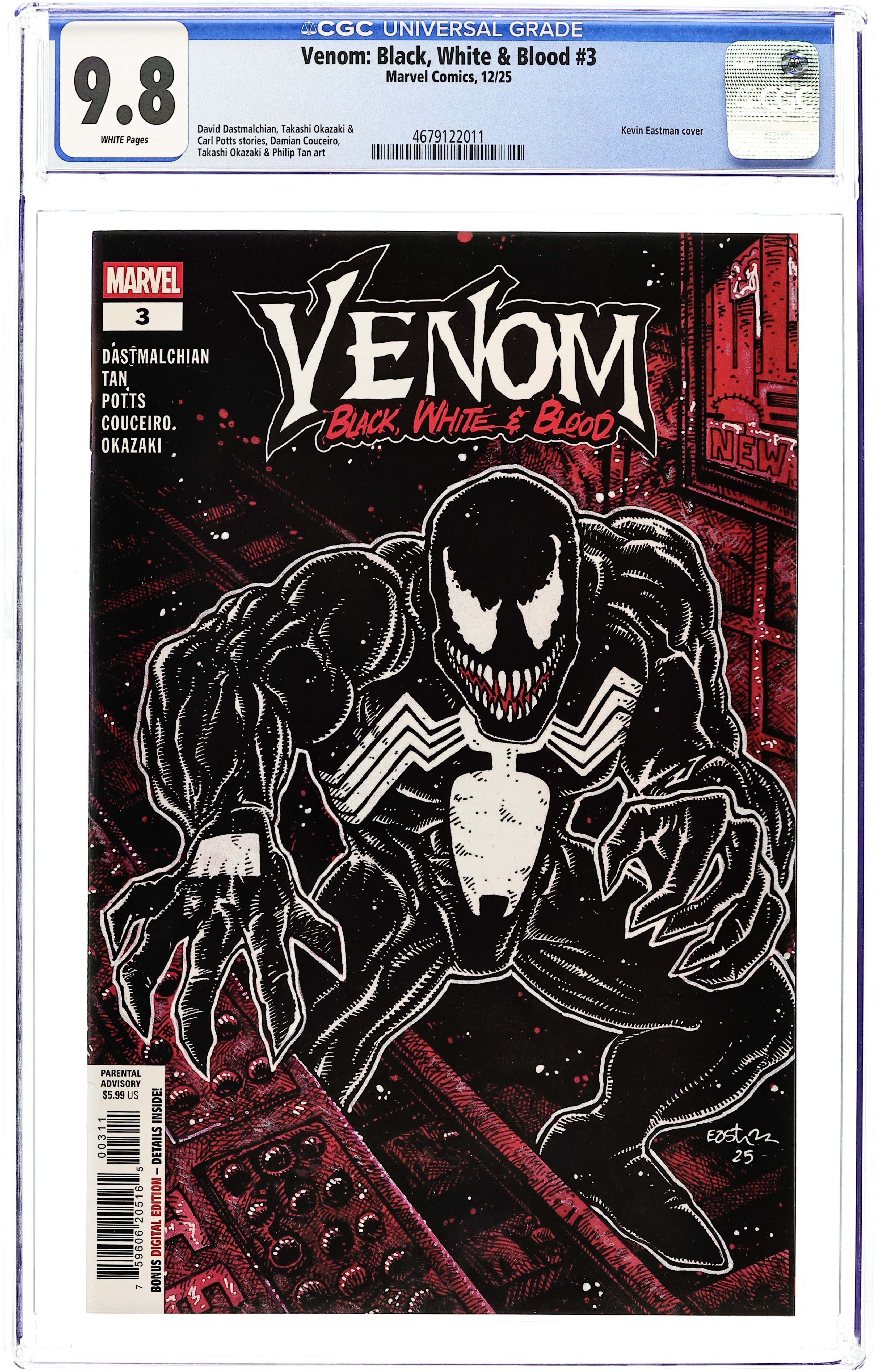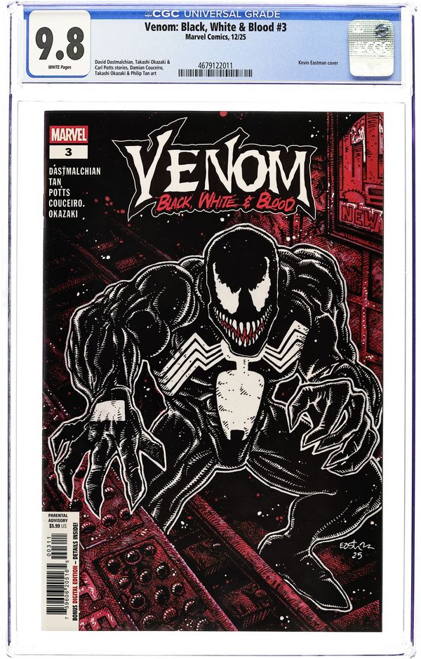 (W) Carl Potts; David Dastmalchian (A) Philip Tan (CA) Kevin Eastman WITH GREAT POWER THERE MUST ALSO COME SYMBIOTE STORIES UNLIKE ANY OTHER! David Dastmalchian joins the fray, as he and Philip Tan reveal the earliest exploits of VENOM as he stalked SPIDER-MAN through New York subways and rooftops, immune to Peter's Spider-Sense, before AMAZING SPIDER-MAN #299! From the world of the sleeper hit WHAT IF PETER PARKER BECAME THE PUNISHER? Carl Potts weaves a web with Damian Couceiro to show what happens if a Peter prone to violent solutions for his enemies became VENOM- and it's just as shocking as you'd imagine! Takashi Okazaki imagines a never-before-seen Venom in ancient Japan, as this SAMURAI SYMBIOTE goes up against a CRIMSON CARNAGE! RATED PARENTAL ADVISORY. 40 pages, partial color, rated parental advisory. Cover price $5.99.