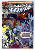 Direct Edition. First $1.25 cover price. "Toy Death!" Part 1 of 2. Script by David Michelinie. Pencils by Chris Marrinan. Inks by Keith Williams. Cover by Mark Bagley and Randy Emberlin. Cardiac is back! And bringing his own brand of justice to the Big Apple! Each day Dr. Elias Wirtham reads the latest corporate exposé in the Daily Bugle...and then goes after that company the following night! But Ben Urich and Peter Parker have caught on to Cardiac's pattern! So the next evening the web-slinger hides away in the manufacturing plant of a corrupt toymaker! Waiting for his very own...Cardiac attack! Cameo appearances by Cletus Kasady, Mary Jane Watson, Flash Thompson, J. Jonah Jameson, and the Black Cat. First $1.25 issue. (Note: The letters page previews the cover to Amazing Spider-Man 361.) 36 pages. Cover price $1.25.