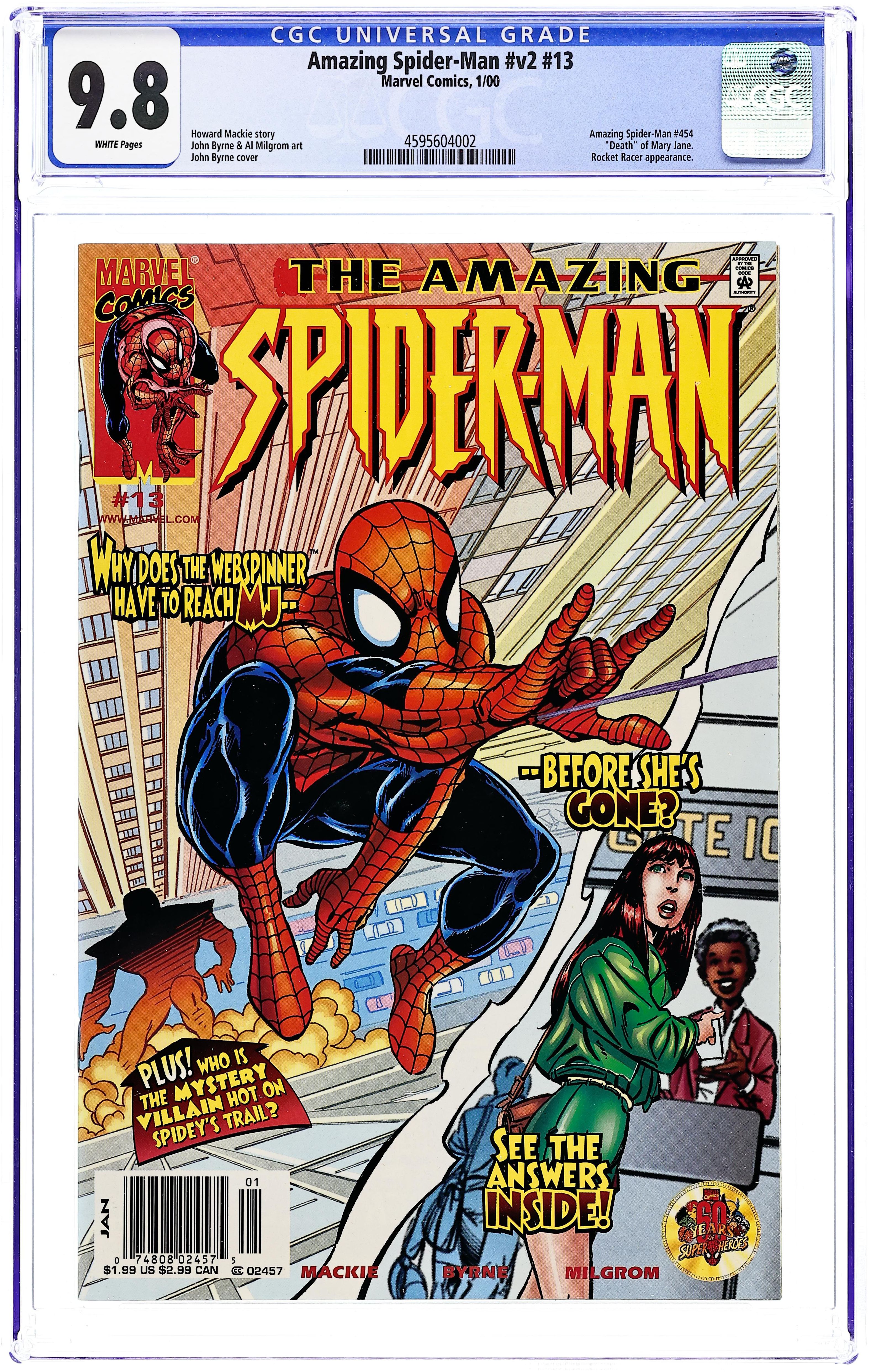 Newsstand Edition. Written by Howard Mackie and John Byrne. Art by John Byrne and Al Milgrom. Cover by John Byrne. Mary Jane is headed to the airport for another exotic photo shoot... and this time, Peter Parker must see her off! But our harried hero is on a collision course with the most unexpected baddie from Spider-Man's past! And if Peter misses her take-off, will MJ say that this is the final straw?! Believe us when we say that the shock ending of this pivotal issue changes things? Big time! FC, 44pgs. Cover price $1.99.