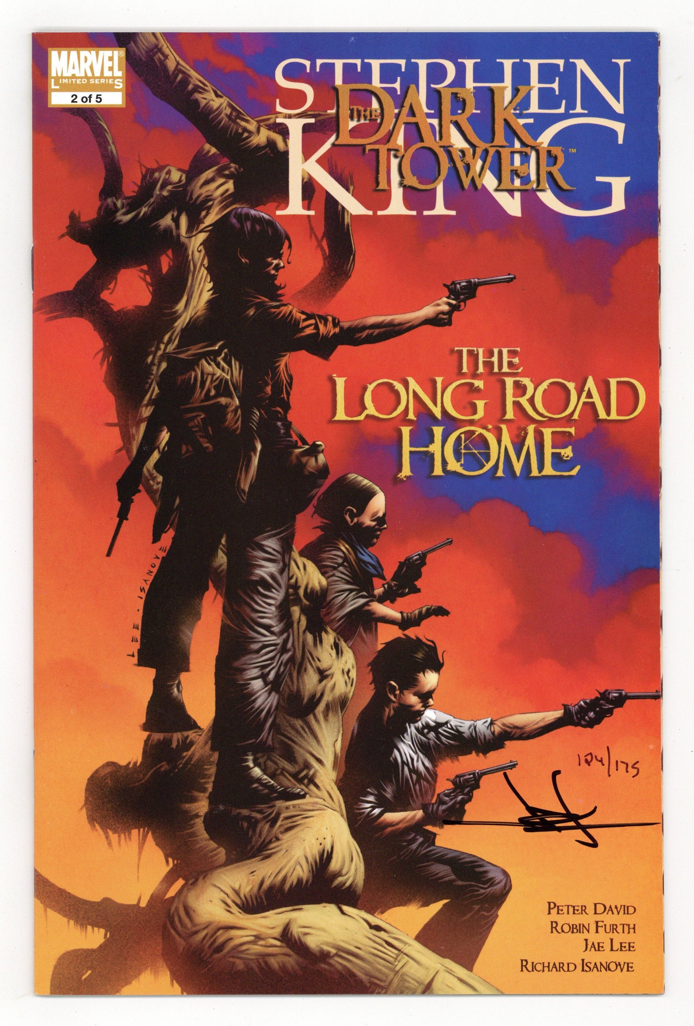 $8.00Dynamic Forces Signed Edition. Signed and numbered by Jae Lee - limited to 175 copies. Includes COA from Dynamic Forces. Cover by Jae Lee and Richard Isanove. Written by ROBIN FURTH & PETER DAVID Art by JAE LEE & RICHARD ISANOVE. Roland's spirit is trapped inside Maerlyn's sinister Grapefruit and is taken on a terrifying journey to the outer reaches of End-World...to the harsh domain called Thunderclap! Back in Mid-World, Roland's ka-tet is pursued by the Hambry posse which intends to kill them all before they are able to cross the Xay River on their journey home. Revenge will soon be at hand for Eldred Jonas and the Big Coffin Hunters. 48 PGS./Cardstock Cover/Parental Advisory...$3.99 Cover price $3.99.