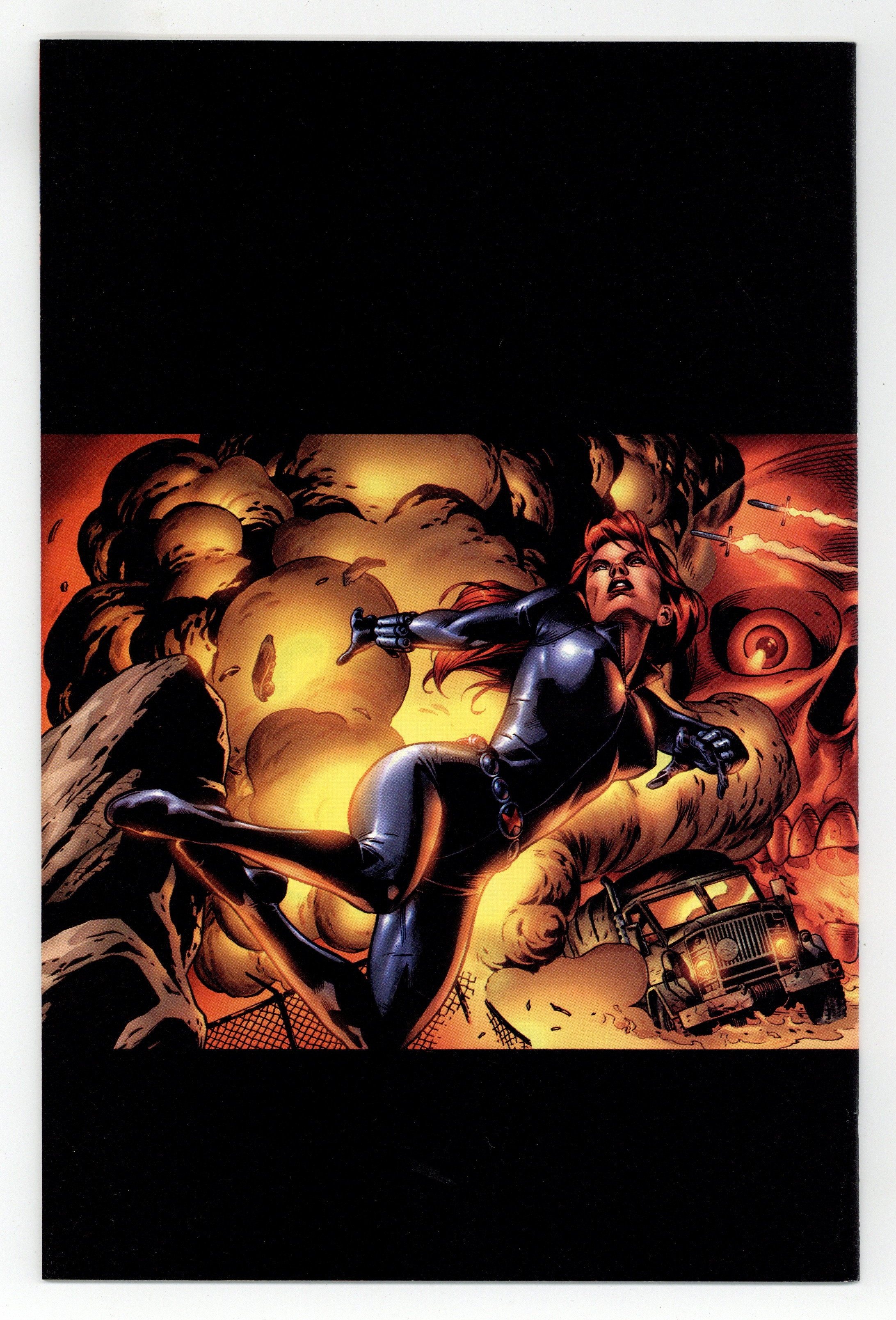 Variant cover by J.G. Jones. THE WARNING: The following analysis is for your eyes only and discusses the proposed elimination and replacement of Natasha Romanova, a.k.a. the Black Widow! THE TRANSMISSION: Data retrievement has uncovered the manufacture of an unstable variation of the "Super Soldier Serum" once used to empower Captain America. Satellite photographs locate chemical production facilities somewhere in the desert of Rhapistan. THE PENTAGON ASSESSMENT: Definite involvement of hard-line KGB agents targeting acquisition of Serum. Request immediate reactivation of Natasha Romanova, former Avenger and one-time spy. THE RISK FACTOR: New Black Widow Operative activated with priority one orders: terminate and replace Natasha Romanova. Written by Devin Grayson. Art and wraparound covers by J.G. Jones. Cover price $2.99.