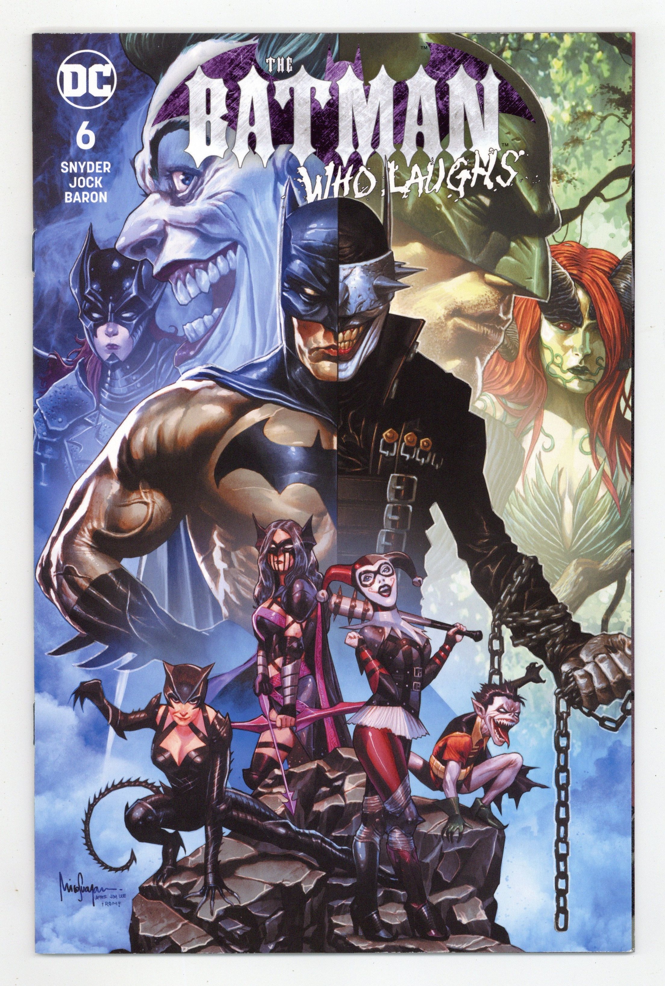 Tags: Batman$9.60Unknown Comics Exclusive Variant Cover by Mico Suayan. Written by Scott Snyder. Art by Jock. True happiness begins in the heart. Our memories and emotions can play tricks on us, though, and divert one's reality into something completely different. The Batman Who Laughs has based his entire worldview on this very concept, and it is in this moment that he must finally confront the one man who stands in his way, the one man who could complete or halt his plan…the last Bruce Wayne. It is here, on the home turf of Wayne Manor, that Bruce relives the happiest moment of his life-the moment he became the Batman Who Laughs. Will Batman be able to outthink the Dark Multiverse version of himself and stop his most sinister end? Or will the original Dark Knight succumb fully and let go of his morality? While good almost always wins, this issue is the start of something more…setting up a larger plan based in the ultimate betrayal of infection, loyalty and true happiness. This is not the end…it's only the beginning. 32 pages, full color. RATED T+