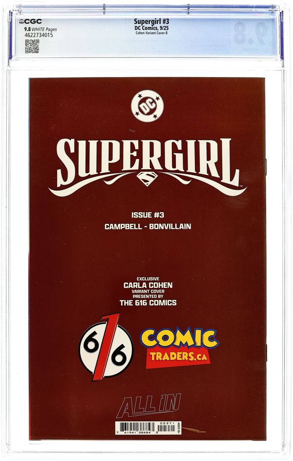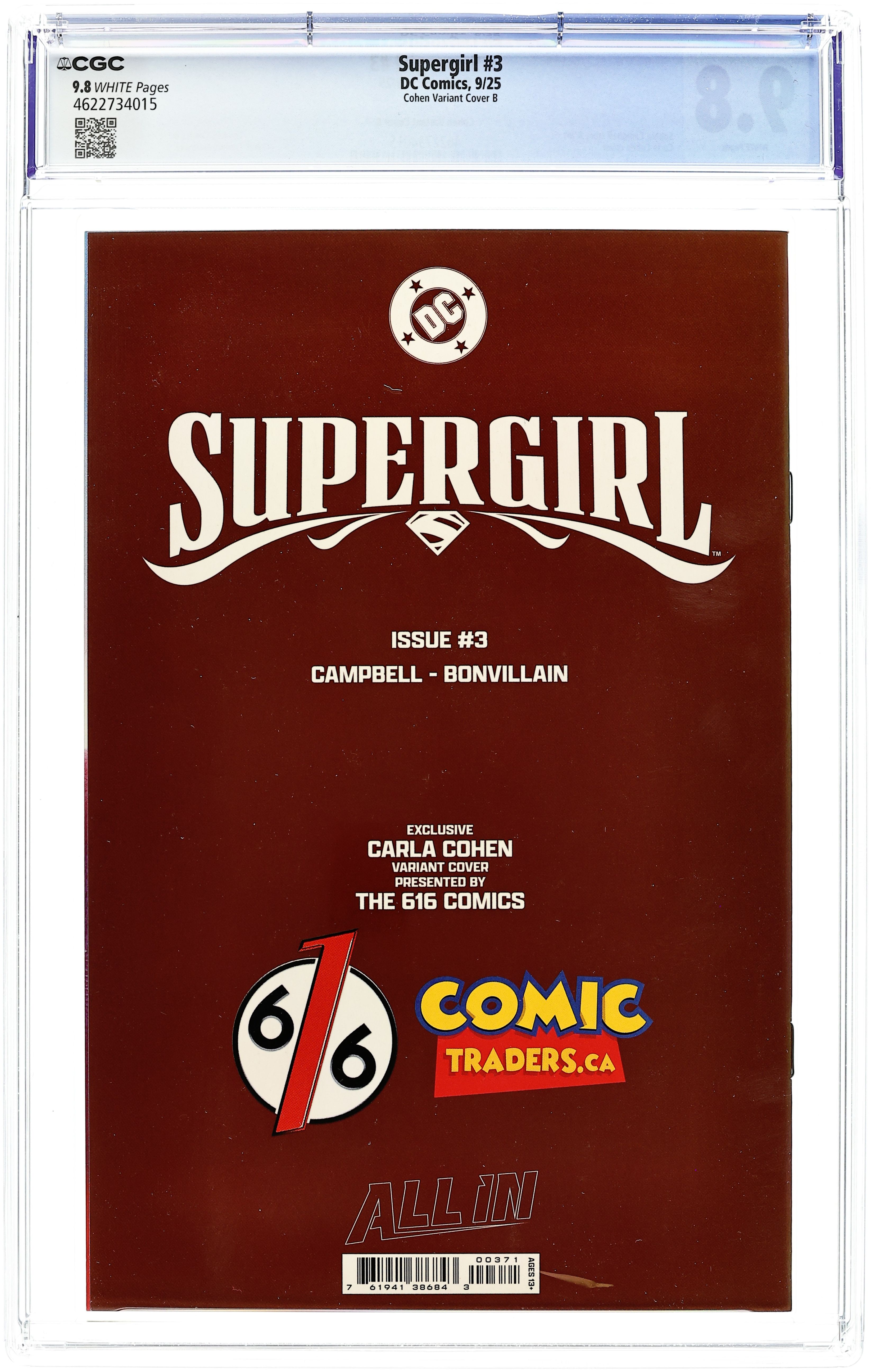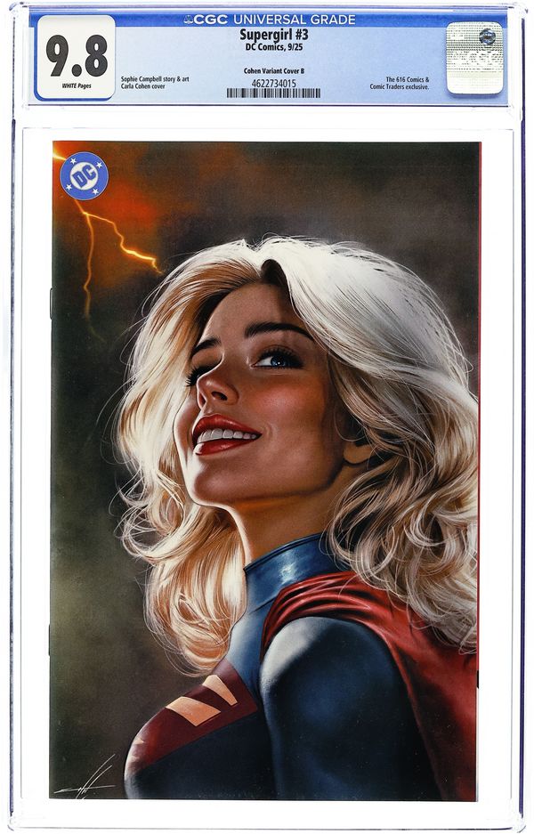 The 616 Comics and Comic Traders Exclusive "Supergirl" Virgin Cover by Carla Cohen. Written and Art by Sophie Campbell. THE TEAM-UP YOU NEVER SAW COMING! Kara and the daughter of Lex Luthor, Lena, have come together to battle a common enemy posing as Midvale's very own Supergirl! Will Lena's brains and Kara's brawn be a match for the super-powered super-genius from Kandor? It's Supergirl versus Supergirl in a fight for the ages! Plus, the debut of Satan Girl! 32 pages, full color. Rated T+