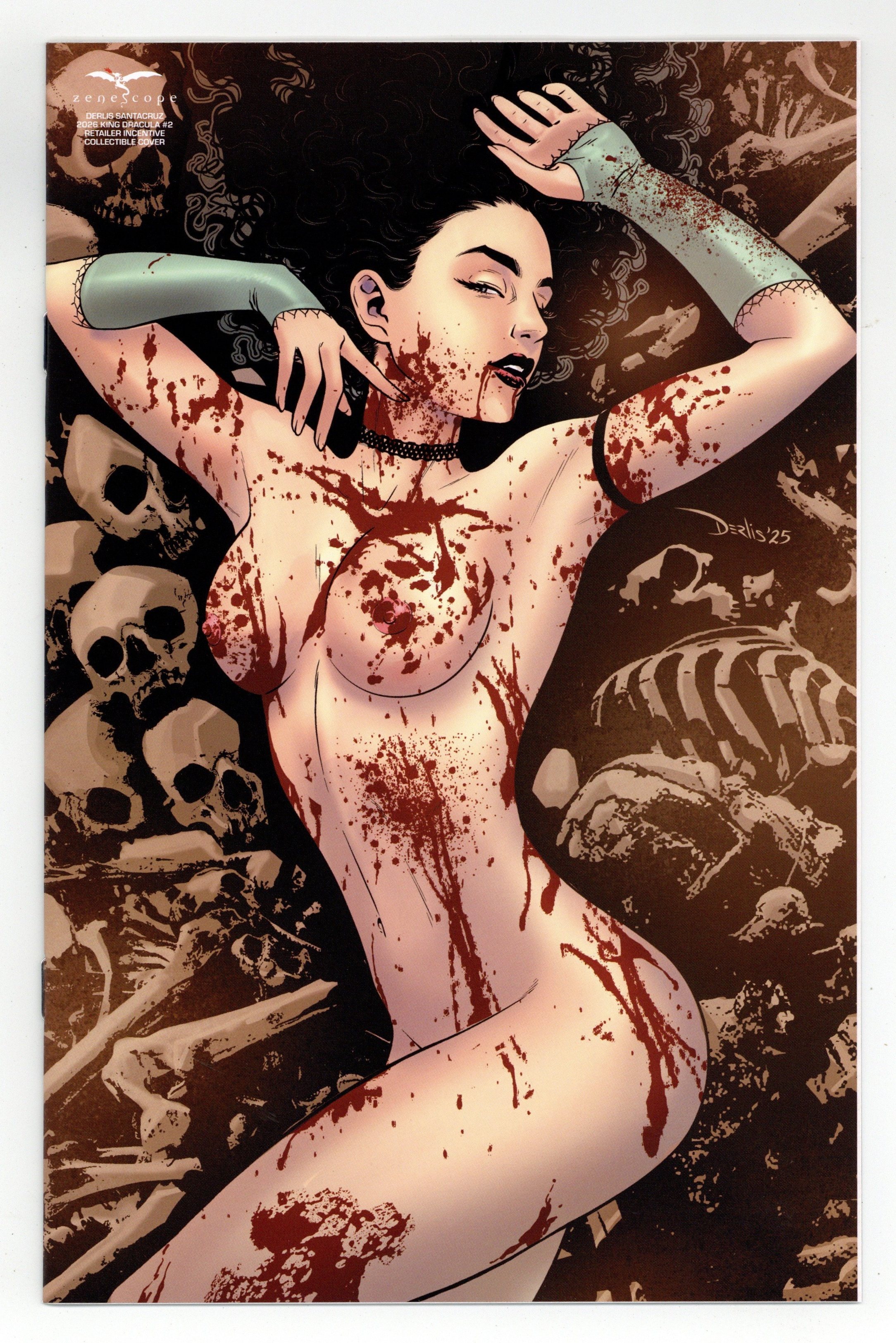 Tags: VampiresPublished Jan 2026 by Zenescope Entertainment.$38.00Limited 1 for 20 retailer incentive variant by Derlis Santacruz. Written by David Wohl. Reinvigorated but still hunted, Dracula emerges from the sewers of New York City, ready to take backthe world that was so ruthlessly stolen from him. But he realizes the Vampire Lords control has growneven deeper into the roots of society in his absence, and new dangers lurk at every turn.But desperate times call for desperate measures, so he seeks an unlikely ally who despises him morethan any other…his Daughter! 32 pages, rated T, full color Cover price $10.00.