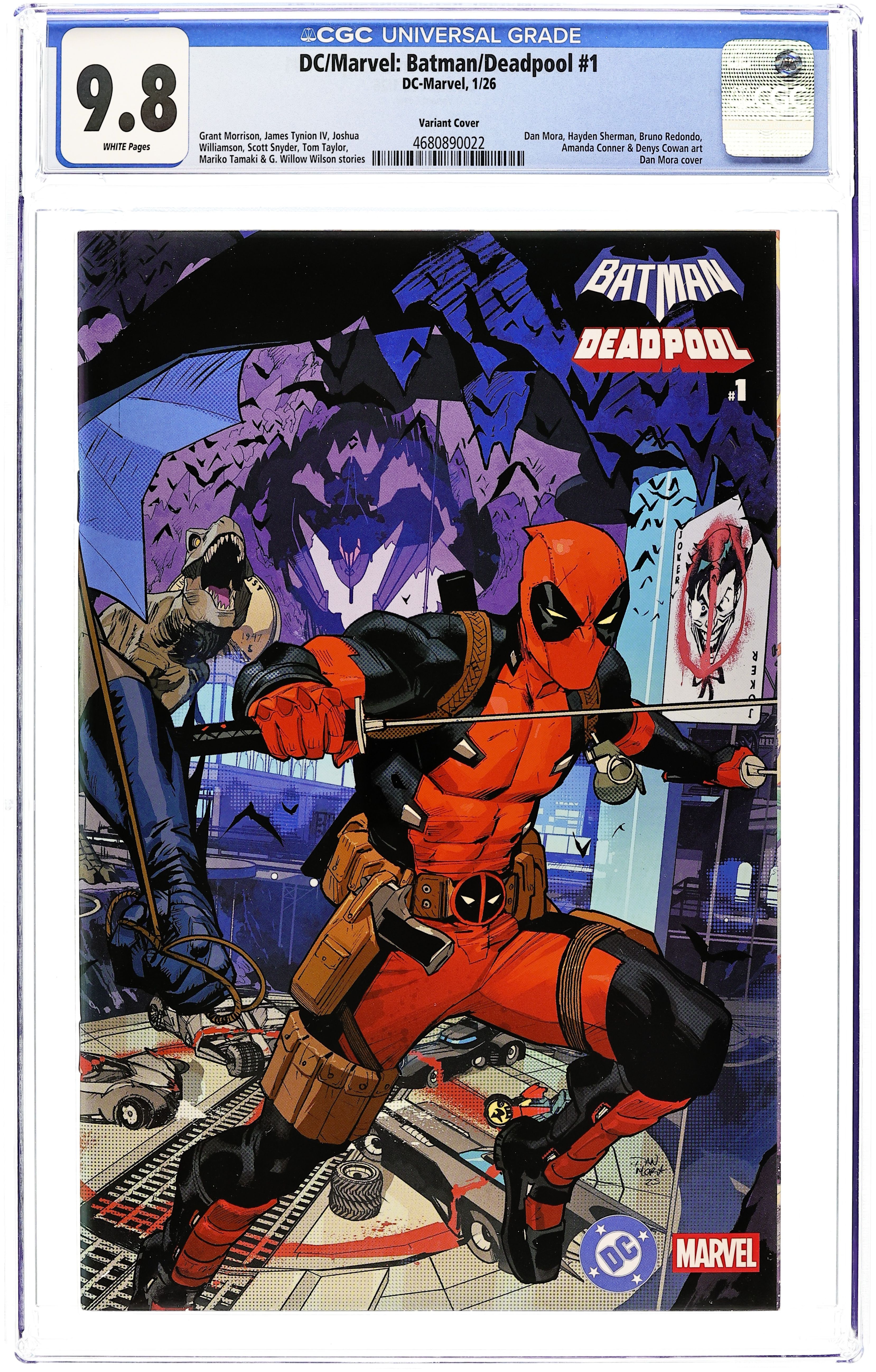 (W) Various (A) Various (CA) Dan Mora THE MOMENT YOU'VE BEEN WAITING FOR! Written by Grant Morrison, Scott Snyder, James Tynion IV, Joshua Williamson, Tom Taylor, Mariko Tamaki and G. Willow Wilson Art by Dan Mora, Hayden Sherman, Bruno Redondo, Amanda Conner and Denys Cowan The Dark Knight and the Merc with a Mouth team up for an adventure so mind-bending youll think youre in a dream! Brought to you by legendary creators Grant Morrison and Dan Mora! And be sure not to miss these incredible extra stories: Scott Snyder, James Tynion IV, and Joshua Williamson team up with Hayden Sherman for a magical Constantine/Doctor Strange tale! Tom Taylor and Bruno Redondo bring you an epic Nightwing/Dick Grayson and Laura Kinney/Wolverine story! Mariko Tamaki and Amanda Conner smash Harley Quinn and the Hulk together! G. Willow Wilson and Denys Cowan tell an electrifying Static and Ms. Marvel yarn! 64 pages, full color, rated 13+. Cover price $8.99.