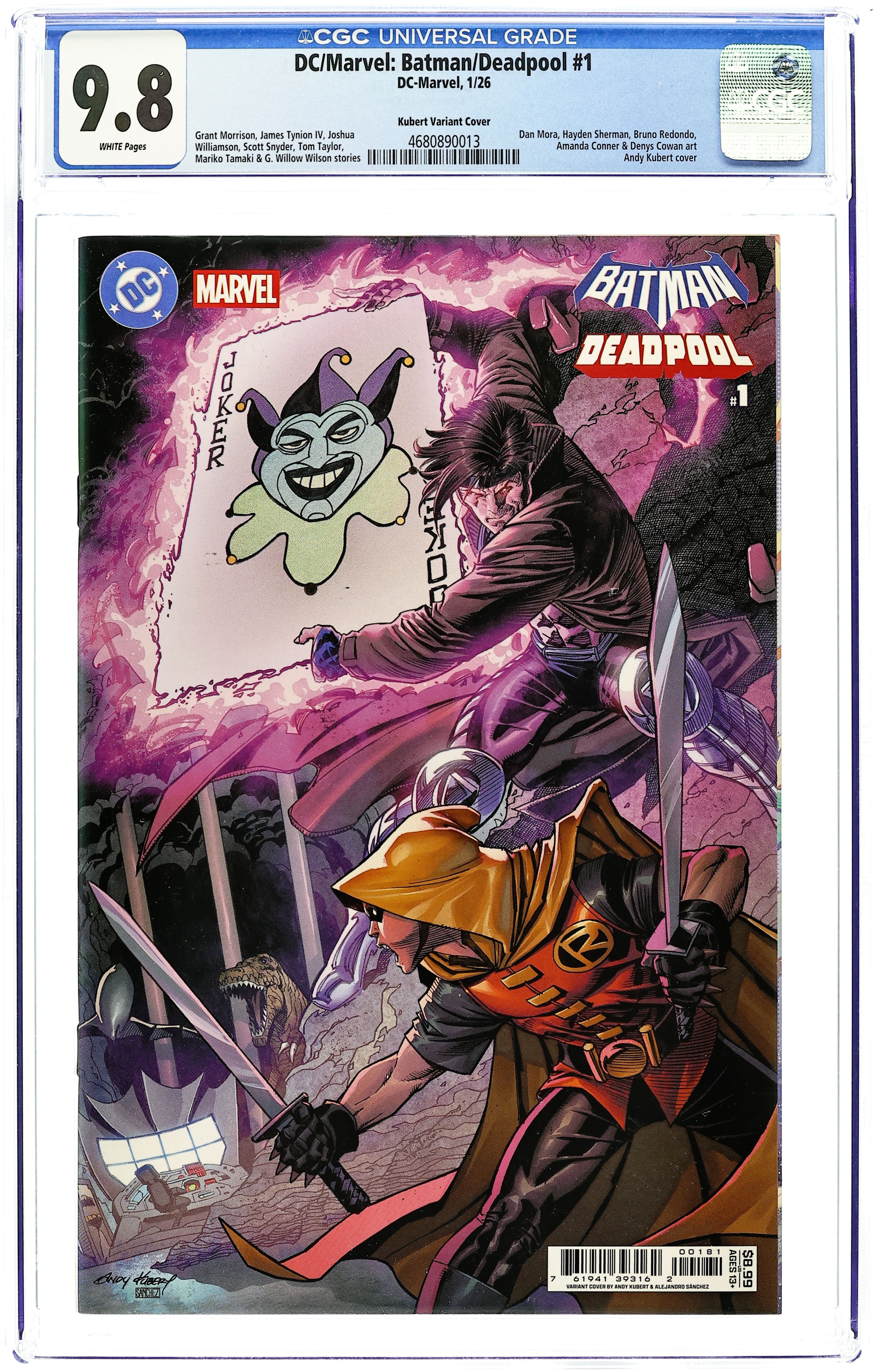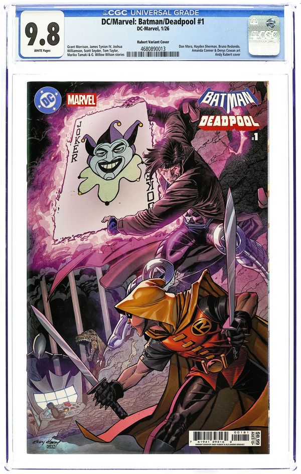 (W) Various (A) Various (CA) Andy Kubert THE MOMENT YOU'VE BEEN WAITING FOR! Written by Grant Morrison, Scott Snyder, James Tynion IV, Joshua Williamson, Tom Taylor, Mariko Tamaki and G. Willow Wilson Art by Dan Mora, Hayden Sherman, Bruno Redondo, Amanda Conner and Denys Cowan The Dark Knight and the Merc with a Mouth team up for an adventure so mind-bending youll think youre in a dream! Brought to you by legendary creators Grant Morrison and Dan Mora! And be sure not to miss these incredible extra stories: Scott Snyder, James Tynion IV, and Joshua Williamson team up with Hayden Sherman for a magical Constantine/Doctor Strange tale! Tom Taylor and Bruno Redondo bring you an epic Nightwing/Dick Grayson and Laura Kinney/Wolverine story! Mariko Tamaki and Amanda Conner smash Harley Quinn and the Hulk together! G. Willow Wilson and Denys Cowan tell an electrifying Static and Ms. Marvel yarn! 64 pages, full color, rated 13+. Cover price $8.99.