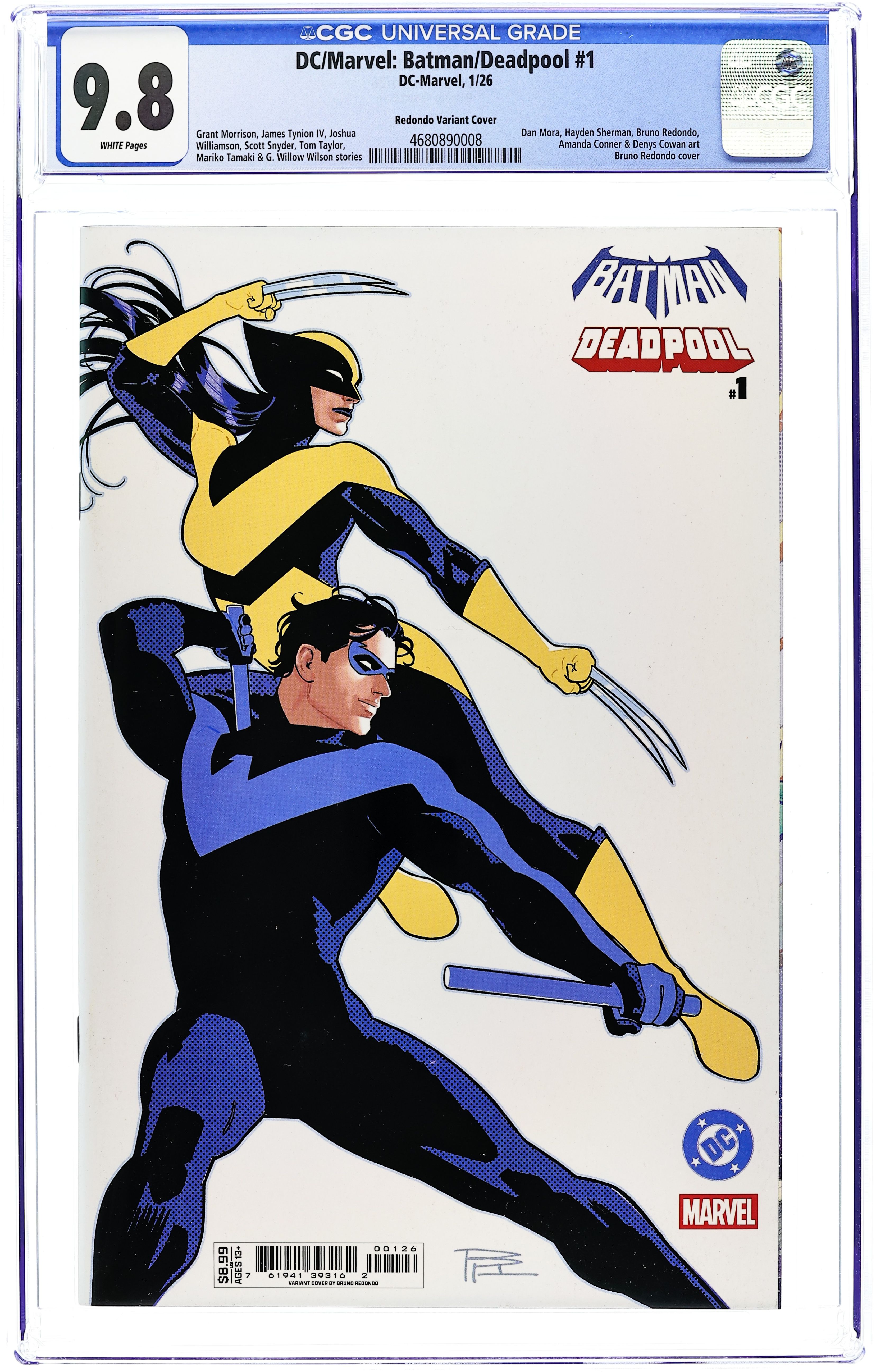 (W) Various (A) Various (CA) Bruno Redondo THE MOMENT YOU'VE BEEN WAITING FOR! Written by Grant Morrison, Scott Snyder, James Tynion IV, Joshua Williamson, Tom Taylor, Mariko Tamaki and G. Willow Wilson Art by Dan Mora, Hayden Sherman, Bruno Redondo, Amanda Conner and Denys Cowan The Dark Knight and the Merc with a Mouth team up for an adventure so mind-bending youll think youre in a dream! Brought to you by legendary creators Grant Morrison and Dan Mora! And be sure not to miss these incredible extra stories: Scott Snyder, James Tynion IV, and Joshua Williamson team up with Hayden Sherman for a magical Constantine/Doctor Strange tale! Tom Taylor and Bruno Redondo bring you an epic Nightwing/Dick Grayson and Laura Kinney/Wolverine story! Mariko Tamaki and Amanda Conner smash Harley Quinn and the Hulk together! G. Willow Wilson and Denys Cowan tell an electrifying Static and Ms. Marvel yarn! 64 pages, full color, rated 13+. Cover price $8.99.
