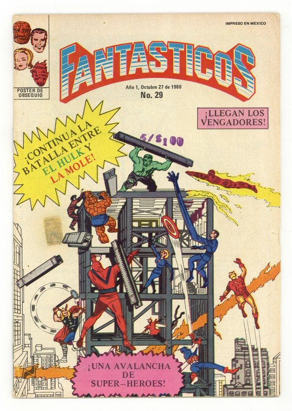 Spanish language reprint of Fantastic Four (1961 1st Series) #29. Pin-up back cover. Printed in Mexico. 7-in. x 10-in., 24 pages, full color.
