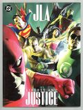 $10.001st printing. Written by PAUL DINI. Painted art and cover by ALEX ROSS. The original members of the classic Justice League are back in an original graphic novel told in sequential storytelling by Emmy Award-winning writer Paul Dini and Eisner Award-winning painter Alex Ross! The JLA must confront a threat from space in the form of a deadly space-borne virus that sets off a chain eaction of worldwide fear and panic. Soon the JLA itself is under suspicion. Are they ultimately responsible for this alien danger? Can the JLA keep the world from tearing itself apart? Softcover, 10-in. x 13-in., 96 pages, full color. Cover price $9.95.