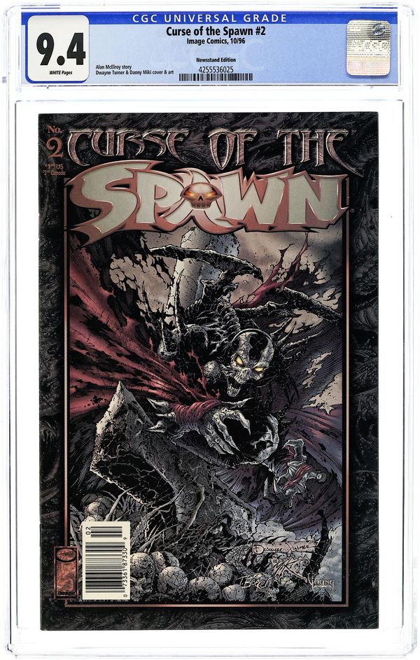 Newsstand Edition. Cover pencils by Dwayne Turner, inks by Danny Miki. Blood Lust, script by Alan McElroy, pencils by Dwayne Turner, inks by Danny Miki; More of the Hellspawn's past is revealed as he prepares to lead Hell's army. 36 pgs. $1.95. Cover price $1.95.