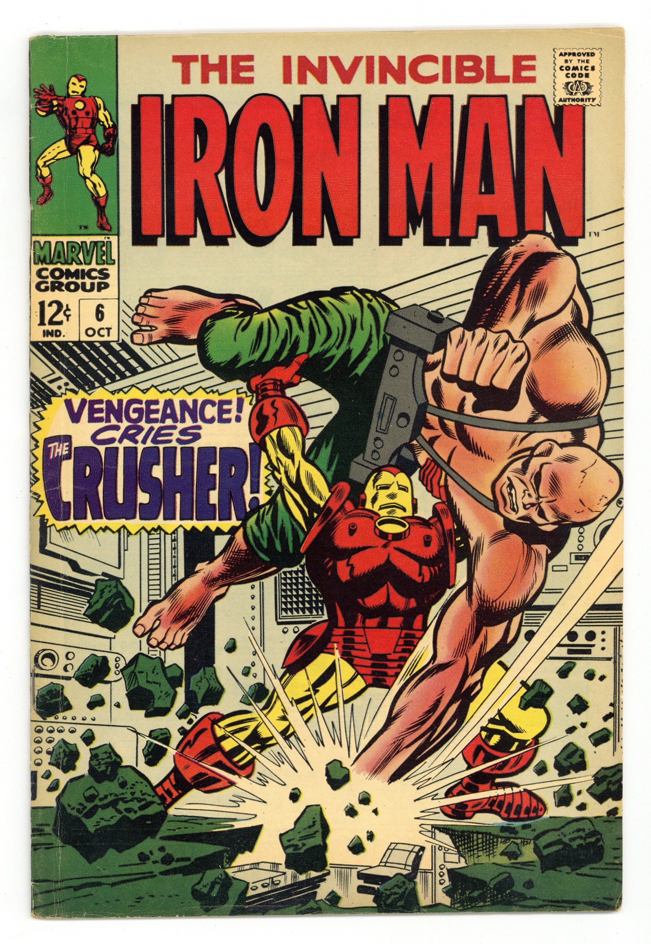 Tags: Marvel Legacy Numbering: Iron Man (part 6), Iron Man$39.00"Vengeance, Cries the Crusher!" Script by Archie Goodwin. Pencils by George Tuska. Inks by Johnny Craig. Cover by George Tuska and Frank Giacoia. The Crusher (last seen in Tales of Suspense 91) has returned! And the super-strong villain has only one thing on his mind ? revenge against Iron Man! The Crusher storms into Stark Industries and the battle vs. Shell-head begins soon thereafter! Meanwhile, Whitney Frost (aka Big M) makes her move to steal Tony's military designs, but instead gets caught in the crossfire of Iron Man's fight vs. the Crusher. (Note: The letters page includes a letter from comics historian Peter Sanderson.) 32 pages Cover price $0.12.