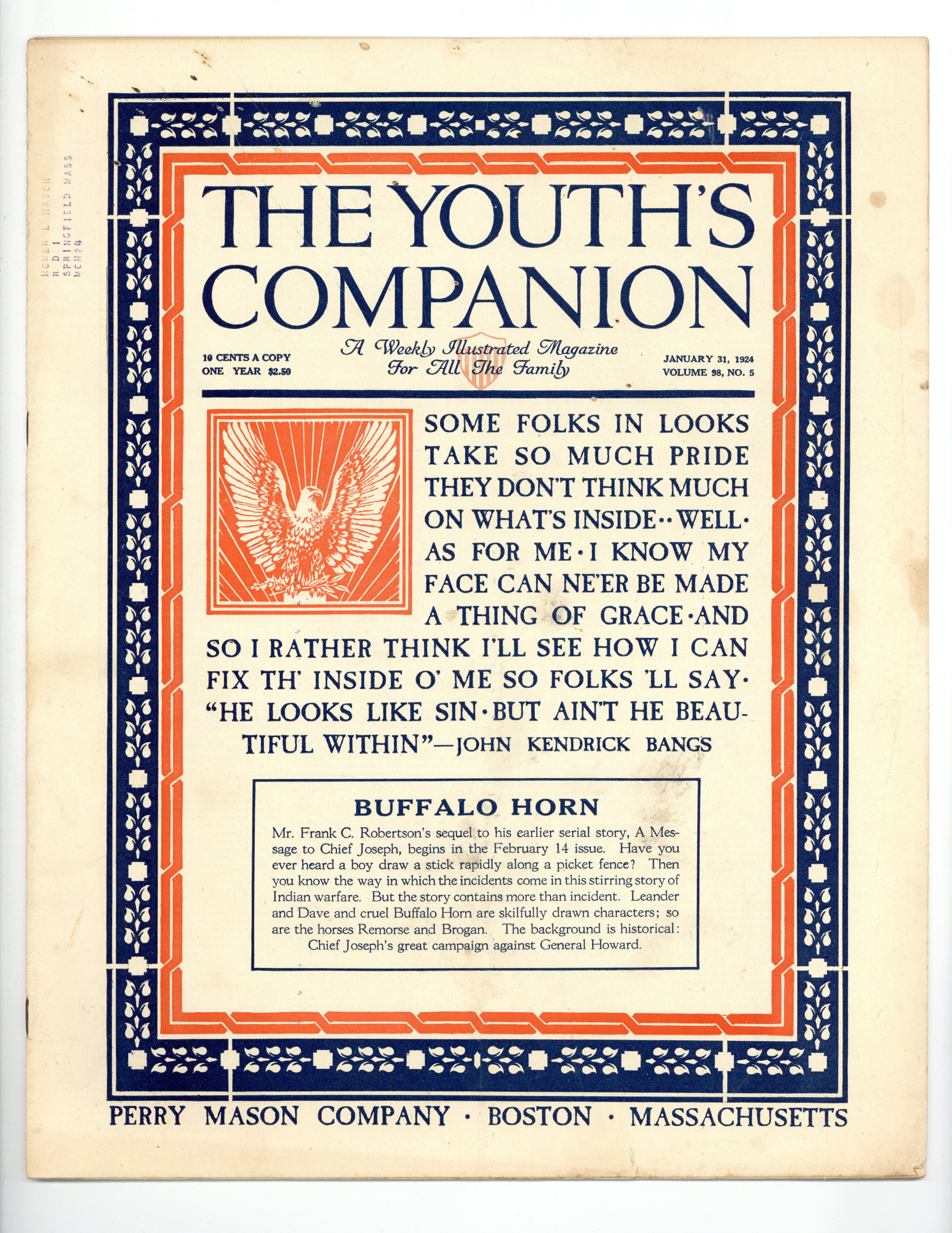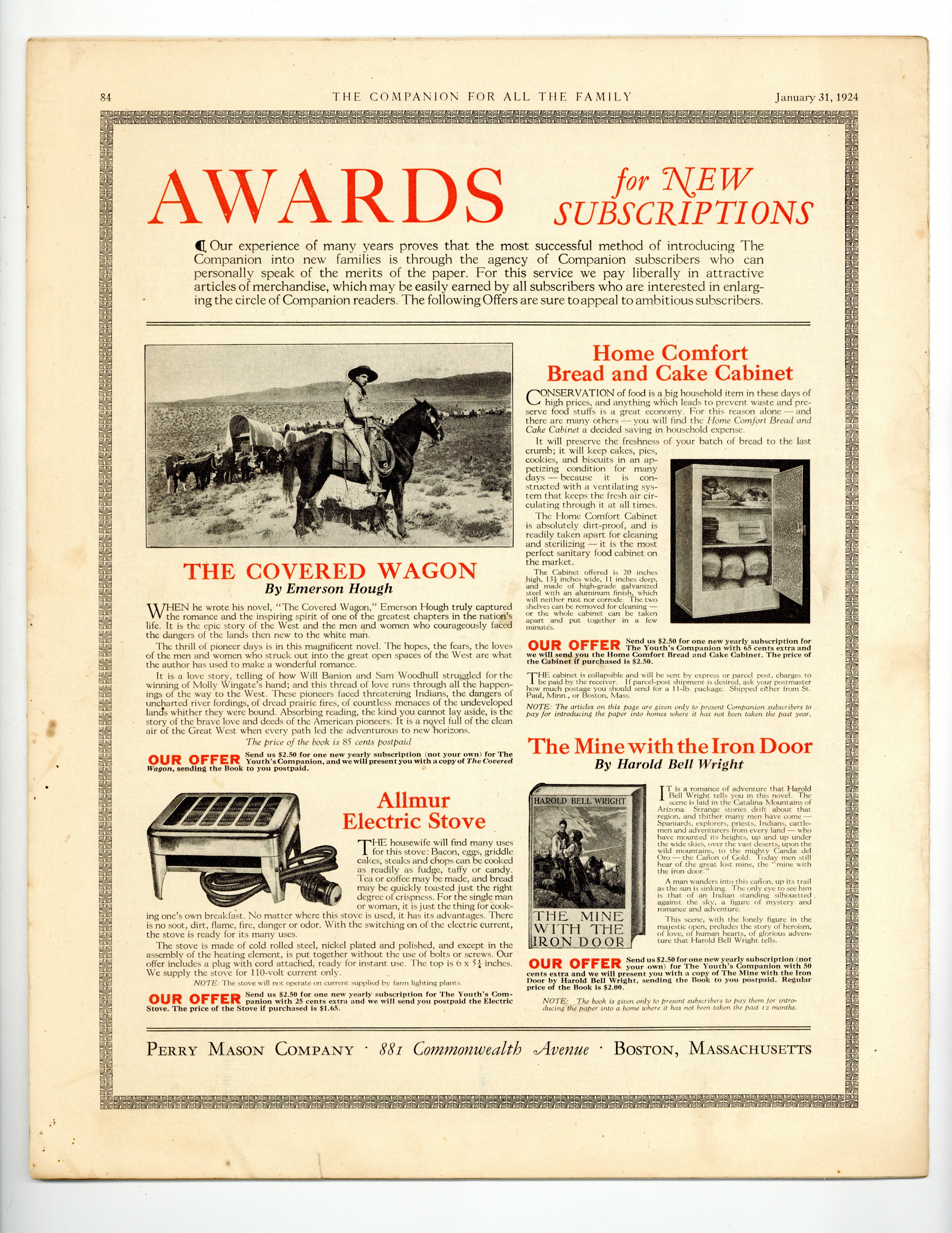 Published Jan 1924 by Perry Mason Company.$10.00- Spine split 5%. Staple rust: Extensive.