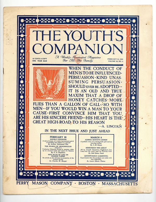Published Feb 1924 by Perry Mason Company.$7.00- Spine split 20%. Staple rust: Moderate.