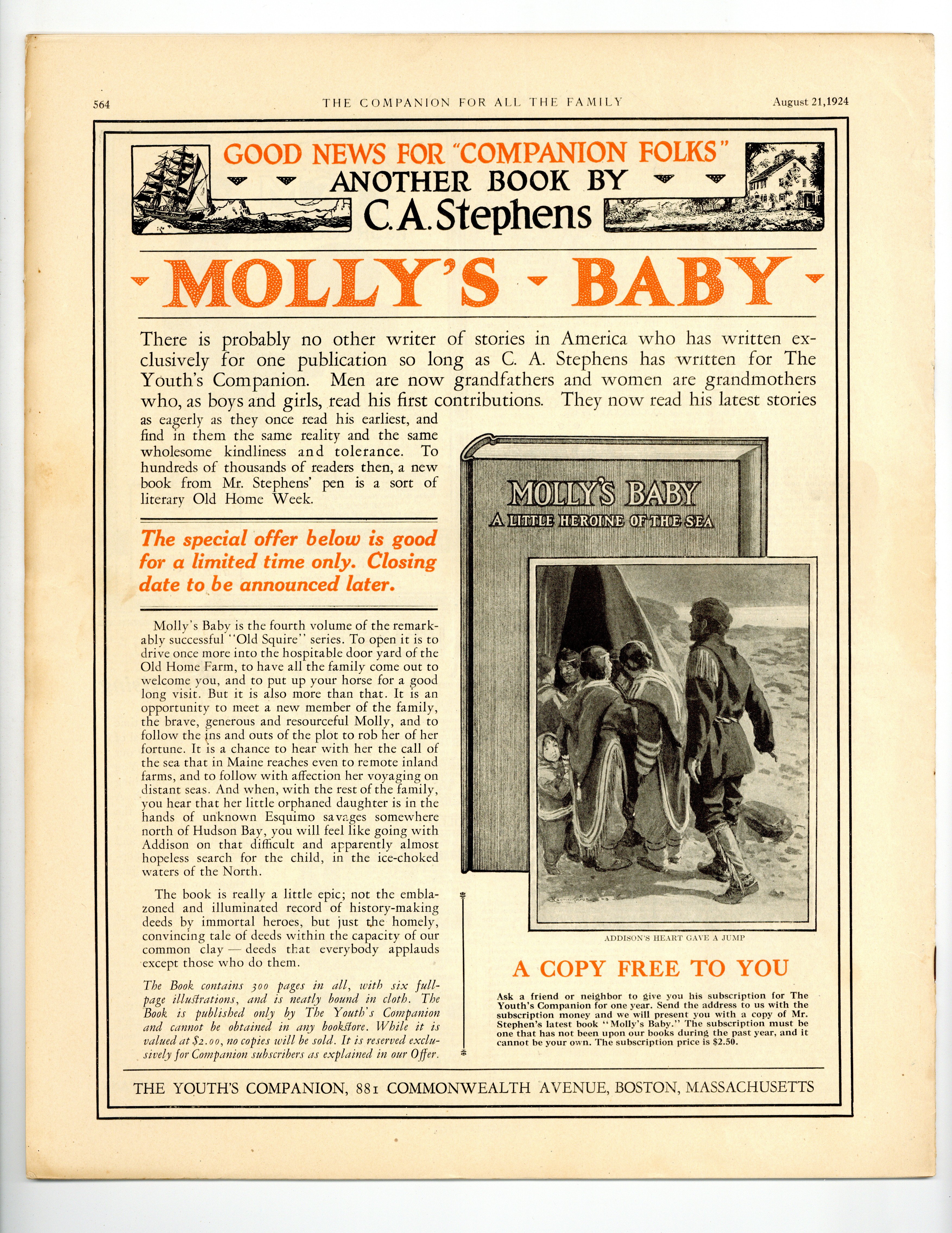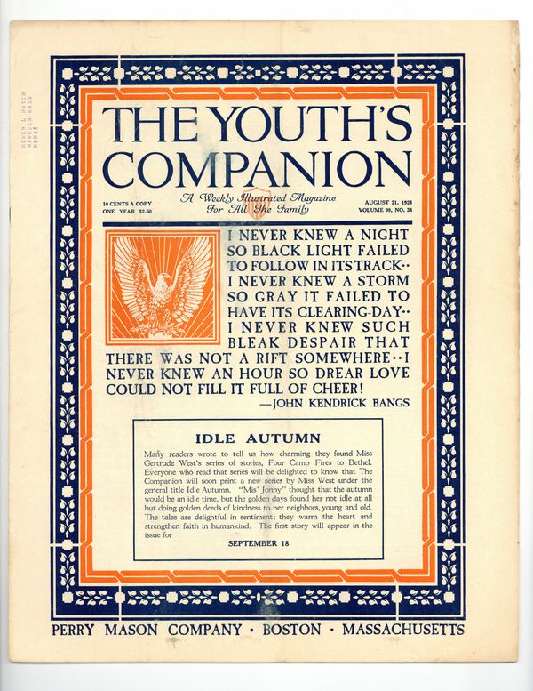 Published Aug 1924 by Perry Mason Company.$8.00- Spine split 20%. Staple rust: Moderate.
