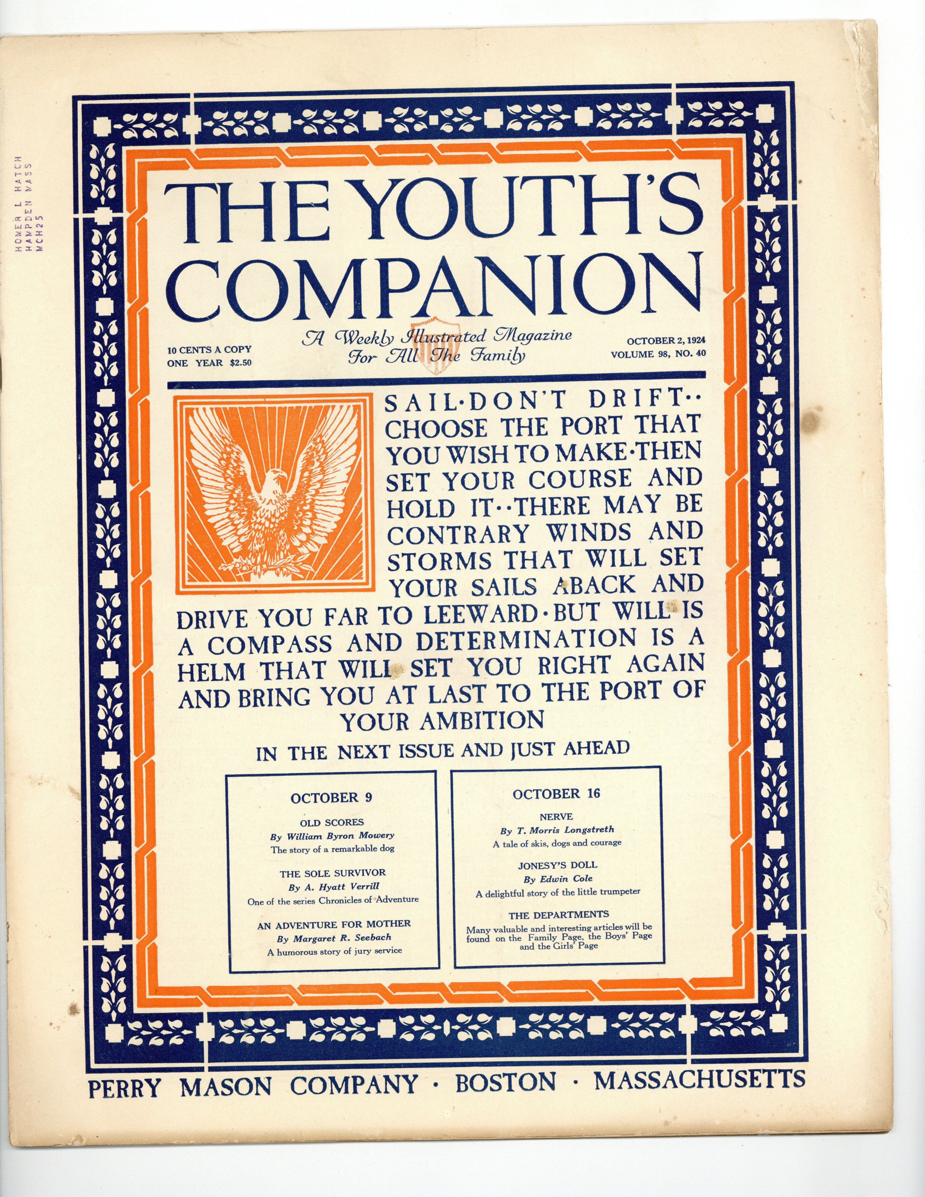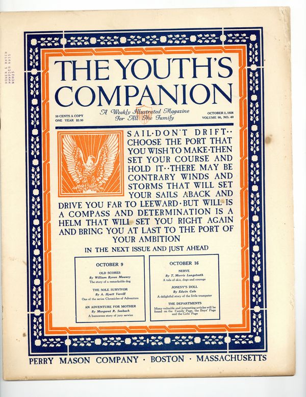 Published Oct 1924 by Perry Mason Company.$3.60- Spine split 40%. Staple rust: Moderate.