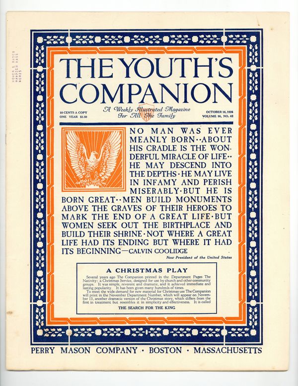 Published Oct 1924 by Perry Mason Company.$15.00- Spine split 10%. Staple rust: Moderate.