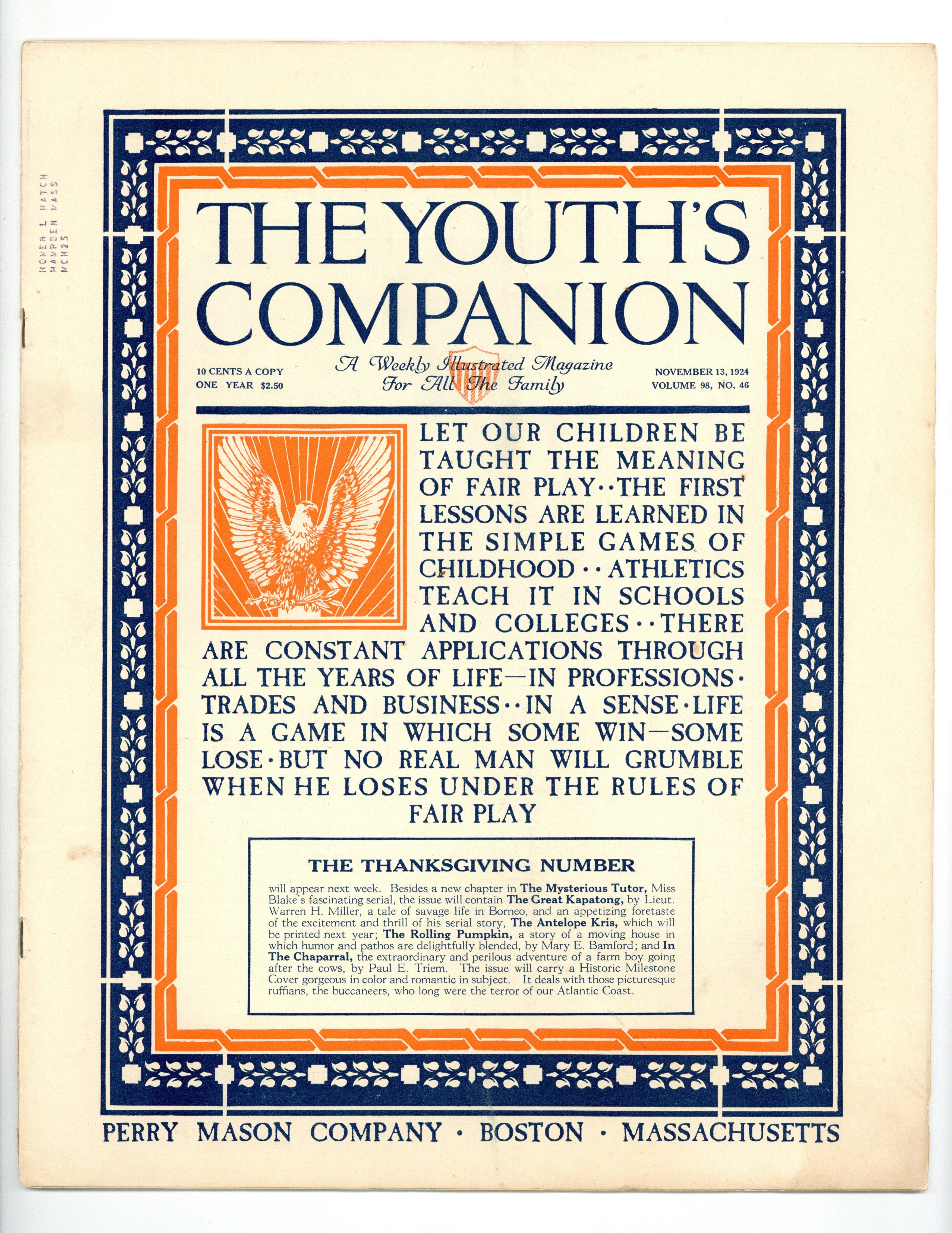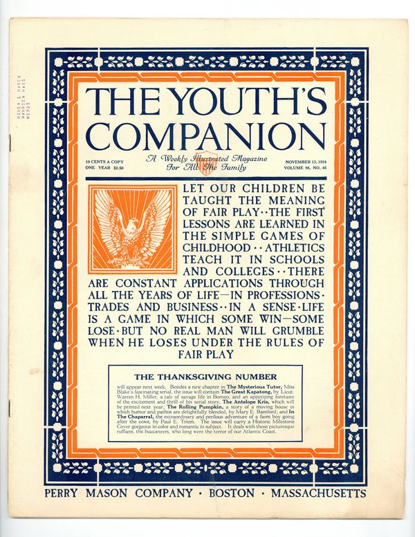 Published Nov 1924 by Perry Mason Company.$6.00- Spine split 30%. Staple rust: Moderate.