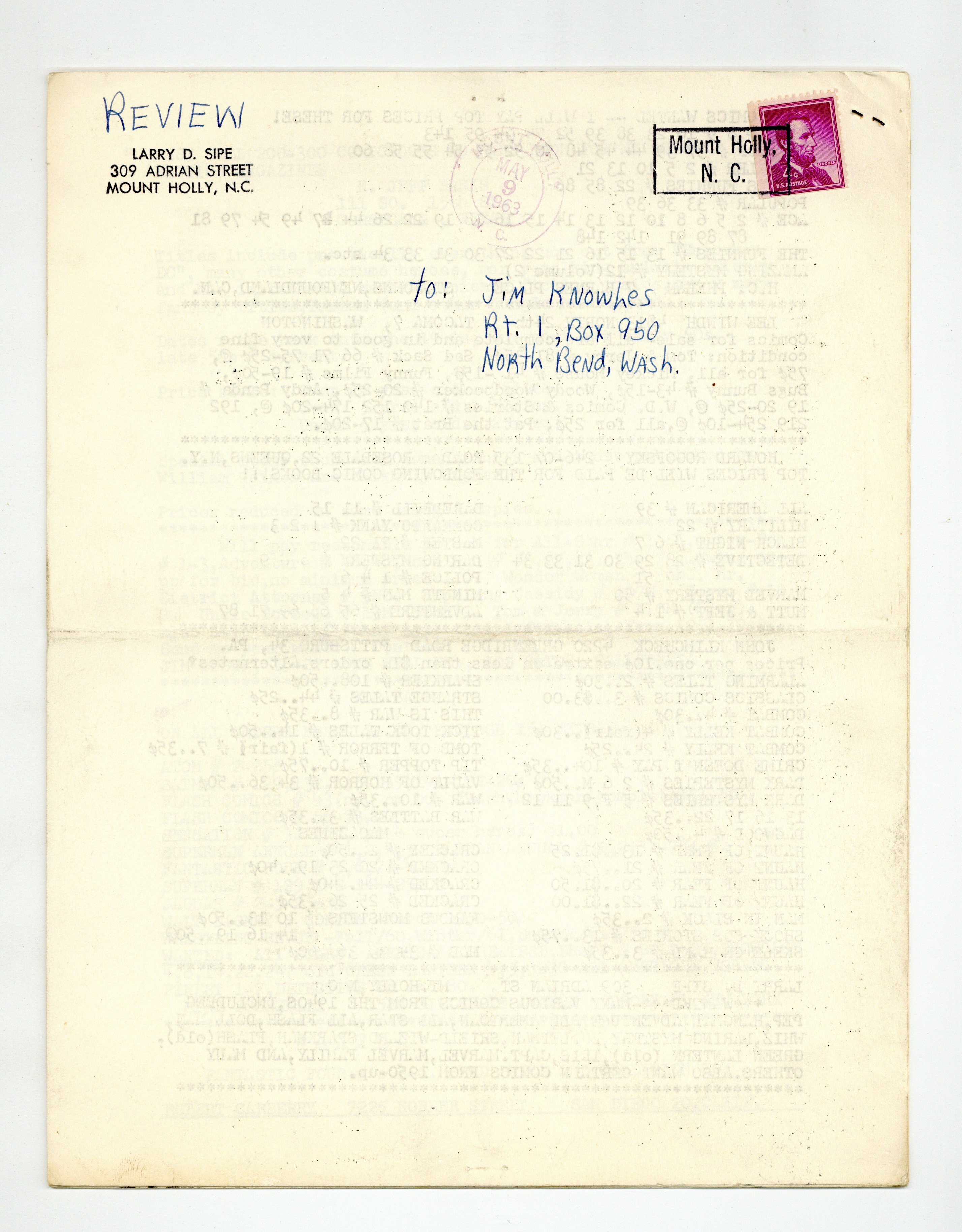 Published Mar 1963 by Larry D. Sipe.$375.00Comic fanzine edited and published by Larry D. Sipe. 8.5" x 11", 18 pages, B&W. Cover price $0.35.