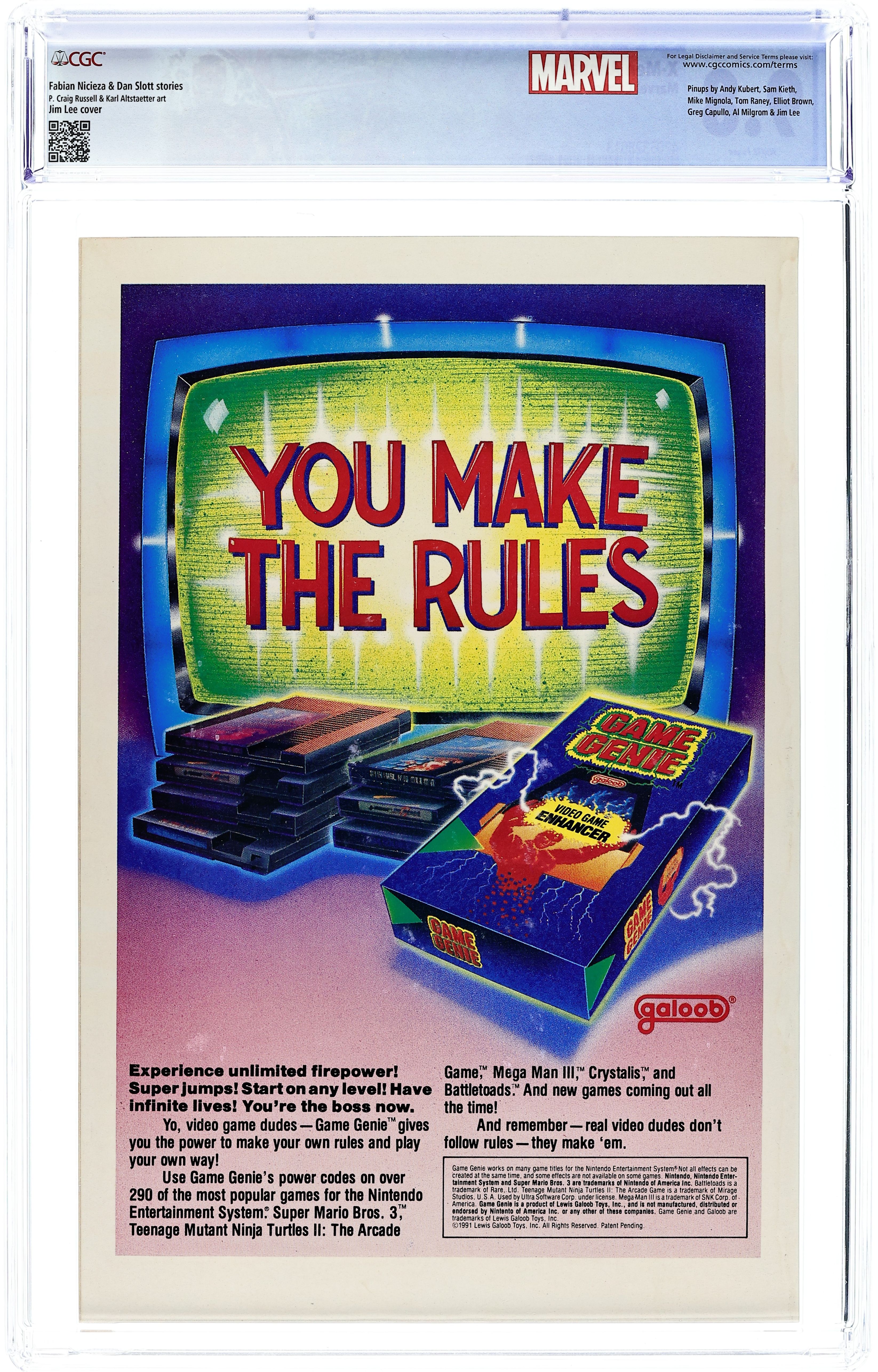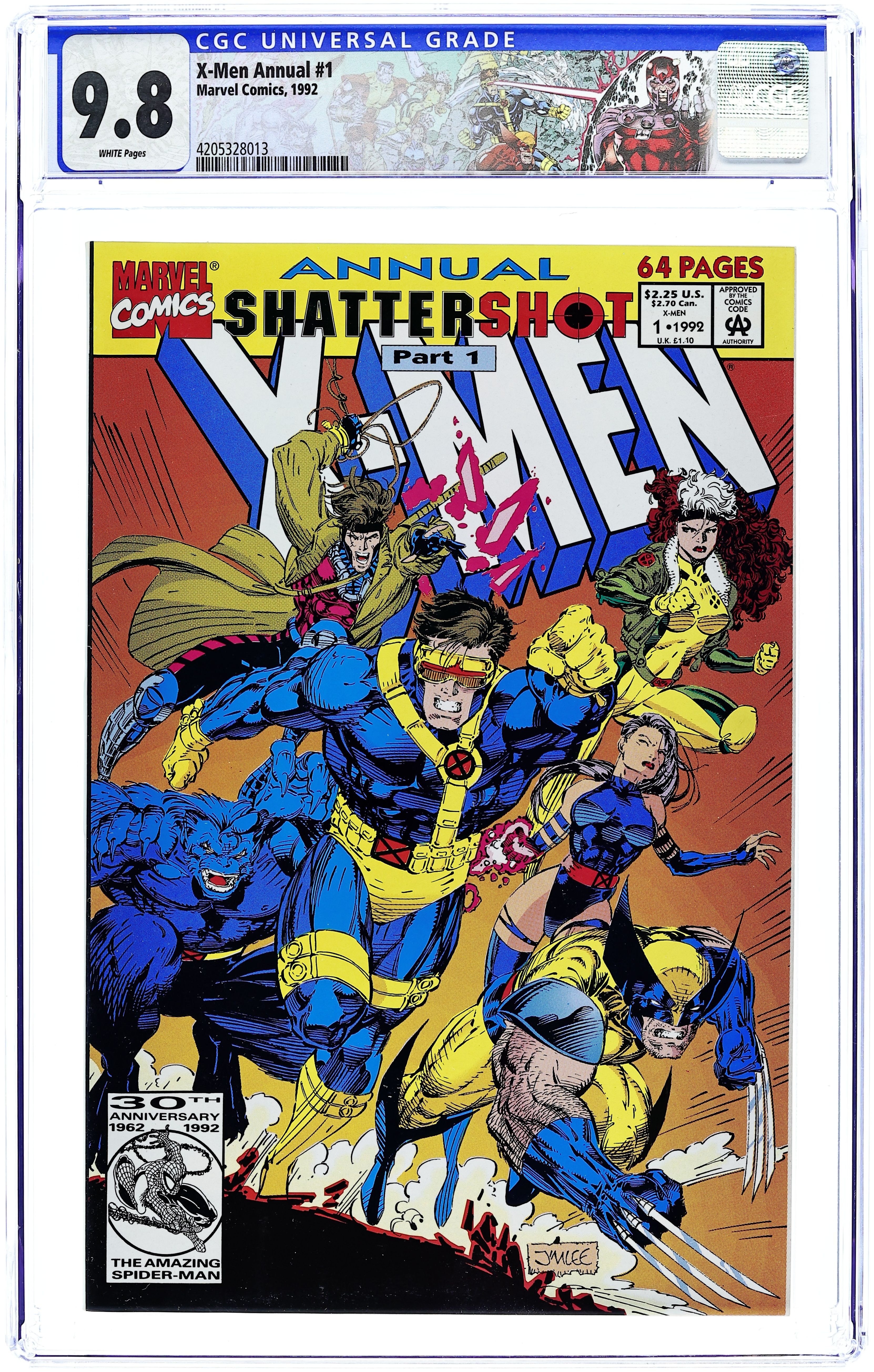 Direct Edition. Shattershot part 1: "The Slaves of Destiny." Script by Fabian Nicieza; breakdowns by Jim Lee; pencils by Craig Russell, Brian Stelfreeze, Adam Hughes, Stuart Immonen, Dan Panosian, Greg Capullo, and Mark Texeira (misspelled "Texiera"); inks by Russell, Stelfreeze, Joe Rubinstein, Harry Candelario, Panosian, and Texeira. Back-up feature: "X-Men Villains Gallery." Script by Dan Slott, pencils by Karl Altstaetter, inks by Scott Williams and Brad Vancata. Pin-ups by Eliot Brown, Tom Grummett/Bob Wiacek, Andy Kubert, Sam Kieth, Texeira, Jeff Johnson/Wiacek, Capullo/Al Milgrom, Mike Mignola, Tom Raney, and Lee, Lee cover. Cover price $2.25.