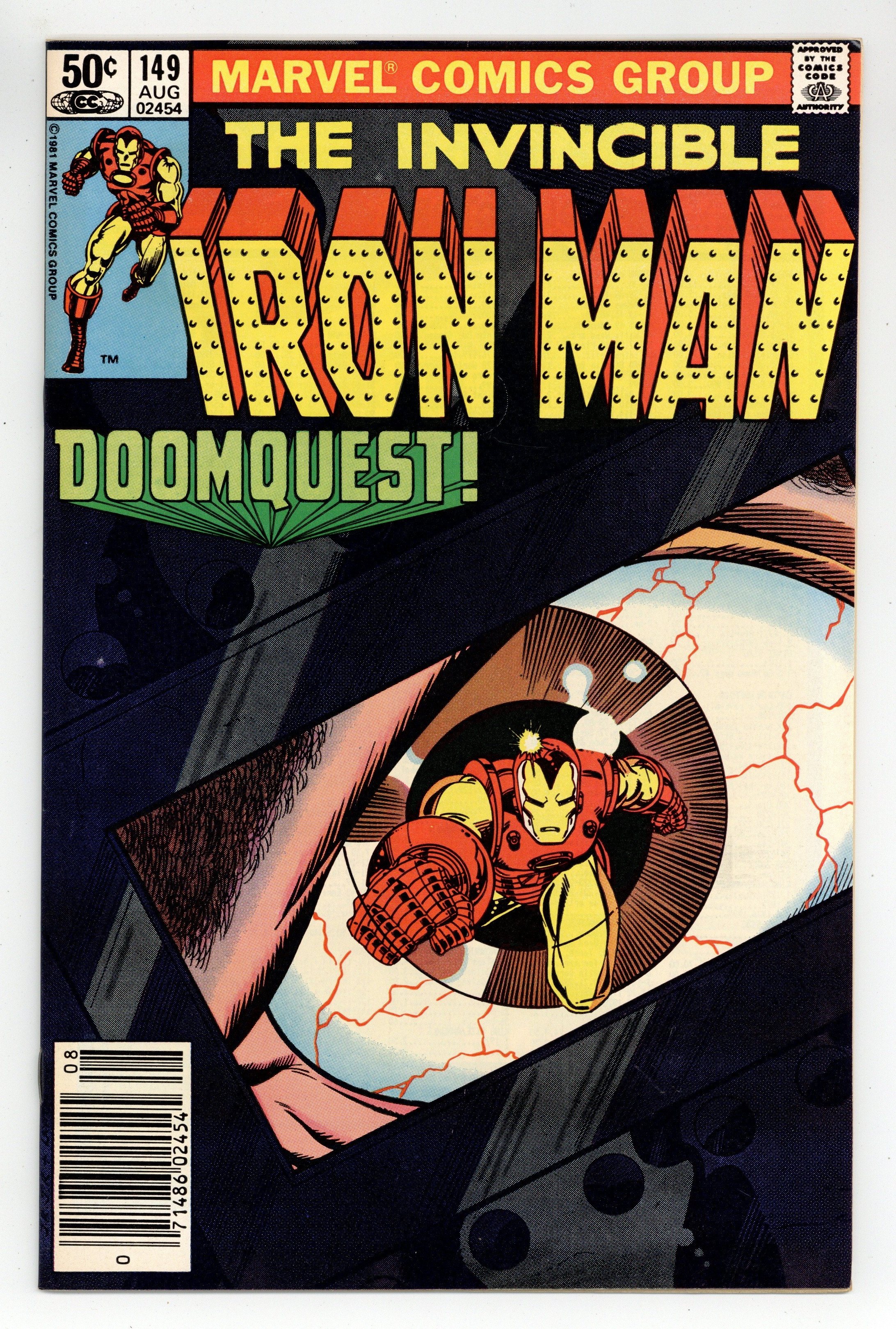 $33.00Newsstand Edition. "Doomquest" Part 1 of 2. Plot by David Michelinie and Bob Layton. Script by David Michelinie. Art by John Romita Jr. (breakdowns) and Bob Layton (finishes). Cover by John Romita Jr. and Bob Layton. It's the golden avenger's first one-on-one encounter with Doctor Doom! After electrical components (manufactured by Stark International) are accidentally sold and shipped to Latveria, Tony Stark flies to the small Balkan country to get them back! However to recover S.I.'s components, Shell-Head must pay a visit to Castle Doom! In the past the invincible one always had the Avengers by his side when confronting the (deposed) monarch of Latveria! But today Iron Man will match brains, brawn, and armor with Victor Von Doom all by himself! Cameo appearance by Jim Rhodes. (Notes: Iron Man and Doctor Doom briefly clashed in Super-Villain Team-Up 9 and Avengers 156. This memorable two-part story was reprinted in 1994 in the trade paperback: Iron Man vs. Doctor Doom; and again in 2008 in the hardcover: Iron Man Doomquest.) 32 pages. Cover price $0.50.